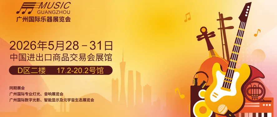 5月28-31日,2026广州国际乐器展将在广交会展馆举办!展会展览面积超40,000平方米,预计汇聚超600家参展企业,展品包含产业链上下游产品,从乐器的创新设计到数字化音乐的技术应用,从音乐文创产品的创意开发到乐器原材料的优质供应,全方位展示音乐产业的发展成果和未来趋势。