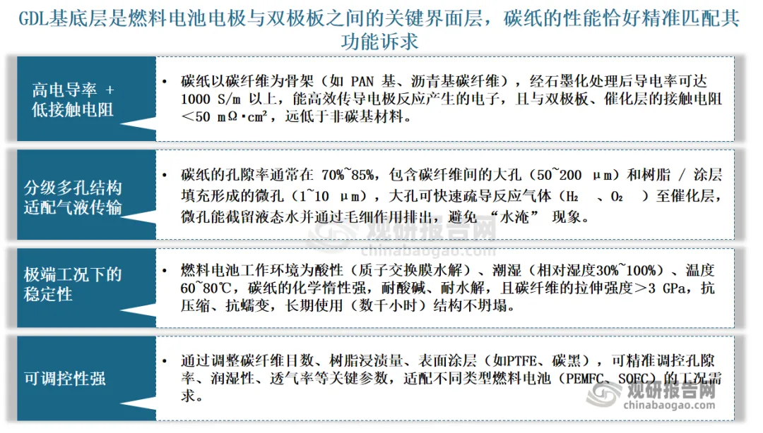 一、碳纸成为燃料电池气体扩散层(GDL)的首选基底材料,其在综合性能上具有显著优势