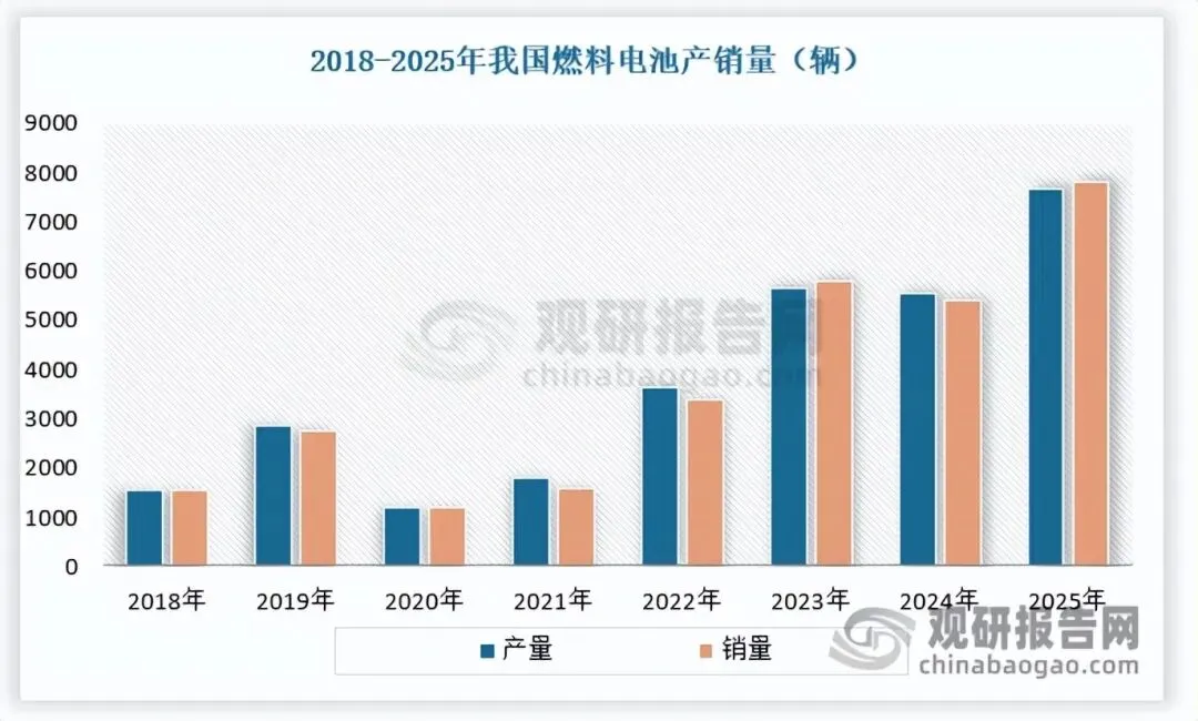 近年来,随着国家“双碳”战略的深入推进和氢能产业政策的持续加码,我国燃料电池汽车产业实现稳步发展,产销量呈现强劲增长态势。数据显示,2018-2025年间,我国燃料电池汽车产量从1527辆增至7655辆,年复合增长率达25.89%;销量由1527辆上升至7797辆,年复合增长率为26.23%;展现出显著的市场扩张动能。伴随燃料电池汽车保有量的持续攀升,作为核心关键材料的碳纸需求也将同步激增。