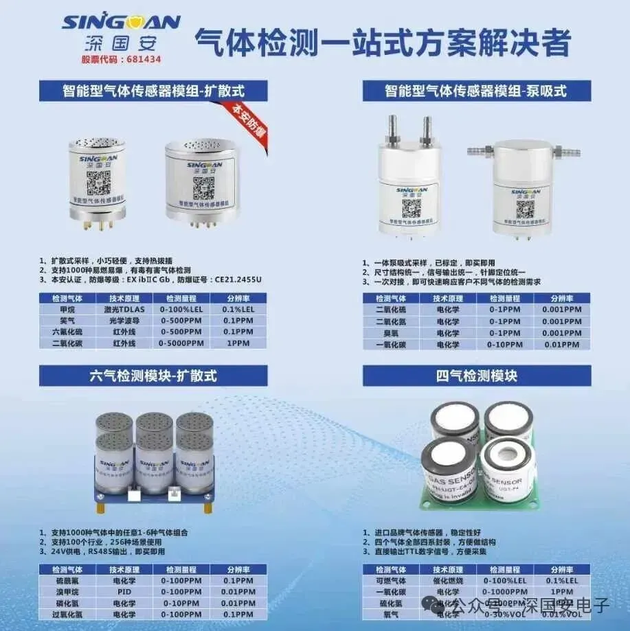 深圳市深国安电子科技有限公司成立于2013年,是一家专业提供气体检测全产业链的国家高新技术企业;2019年在前海股权交易中心成功挂牌,企业代码:681434;公司专注于“安全+环保”两大领域,为客户个性化订制1000多种不同气体检测需求、不同浓度检测范围、不同功能配置、不同气体组合的安全仪表和环境监测设备;涵盖气体传感器、智能气体传感器模组、气体检测模块、固定式气体检测仪、便携式气体检测仪、手提式气体分析仪、气体在线监测系统、物联网监控平台在内的八大系列、10000余款易燃易爆、有毒有害和挥发性气体检测产品。广泛应用于石油、化工、冶金、钢铁、电力、环保、消防、新能源、无人机、工业机器人等200多个应用场景。致力于为客户提供一站式气体检测解决方案。咨询电话:0755-85258900