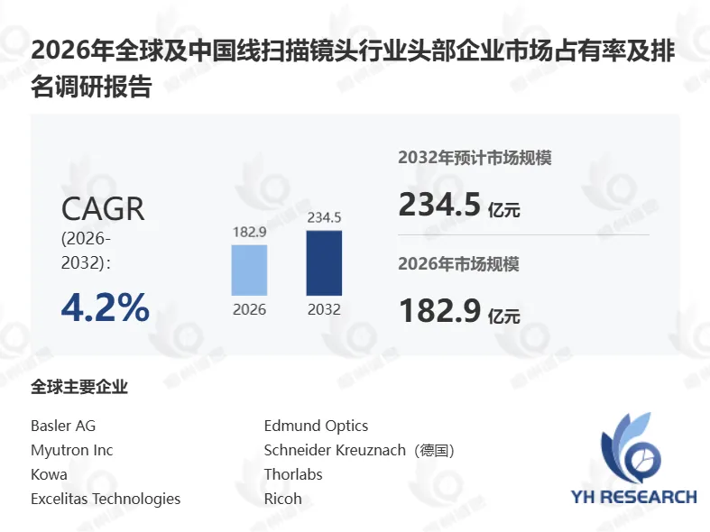 根据YH恒州诚思信息咨询调研统计,2025年全球线扫描镜头市场规模约174.7亿元,预计未来将持续保持平稳增长的态势,到2032年市场规模将接近234.5亿元,未来六年CAGR为4.2%。