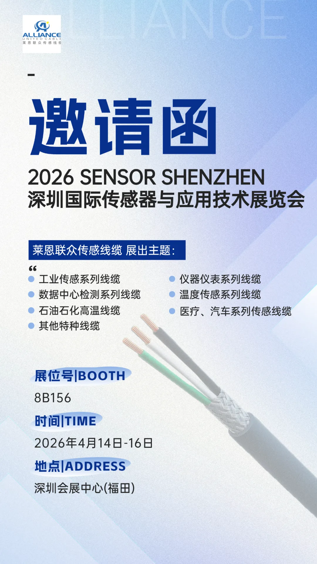 展会邀请|2026 SENSOR SHENZHEN 国际传感器与应用技术2026 SENSOR SHENZHEN 深圳国际传感器与应用技术展览会将于2026年4月14日-16日在深圳举办,莱恩联众传感线缆将亮相展会,展位号8B156,敬请期待!