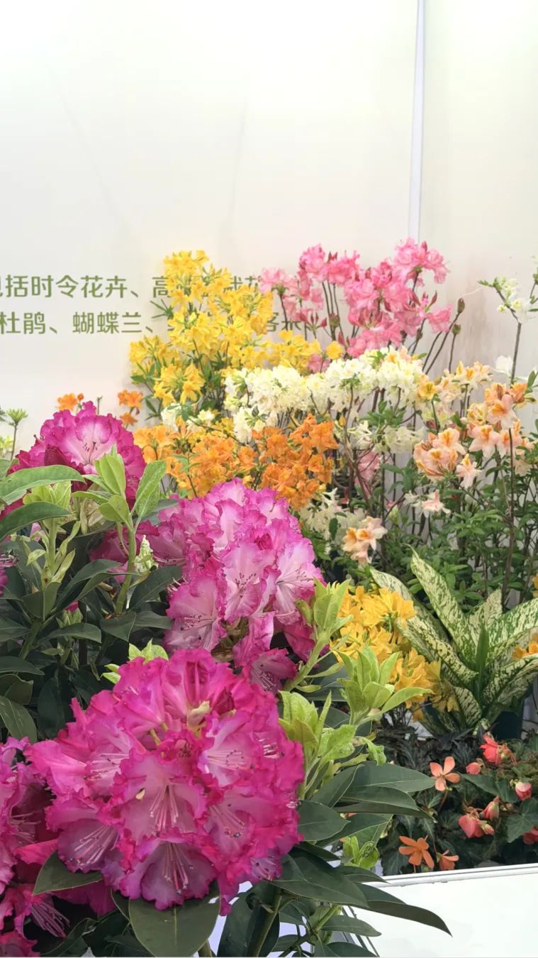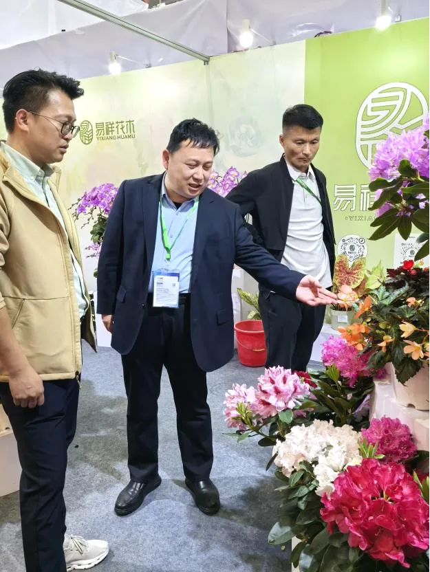 展位上,落叶杜鹃凭借“冬季落叶、春季见花不见枝”的独特景观和强抗逆性,深受专业参展商与园艺爱好者的关注;高山杜鹃则以饱满花型与丰富花色,同样赢得广泛好评;蝴蝶兰凭借花色丰富、花期持久的优势成为展位焦点,有力印证了易祥花木在组培繁育及温室生产领域的技术积淀。此外,绣球、景观海棠、天竺葵、彩叶芋等品种的优良表现,也进一步佐证了其精准培育技术的行业领先地位。
