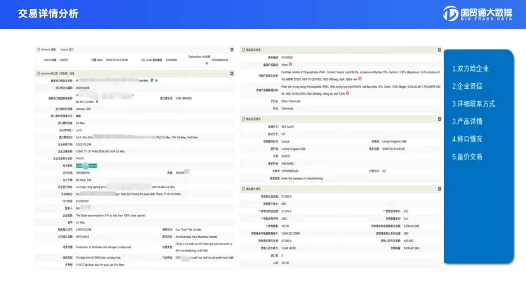 国贸通大数据是一家外贸大数据商务智能DaaS系统和外贸数字化精准营销SaaS平台提供商,覆盖全球230+国家及地区的海关交易数据及统计数据,为企业提供市场分析、买家挖掘、竞争监测、商机洞察等一站式解决方案,帮助企业精准开拓全球市场,降低出海成本,提升贸易成功率。
