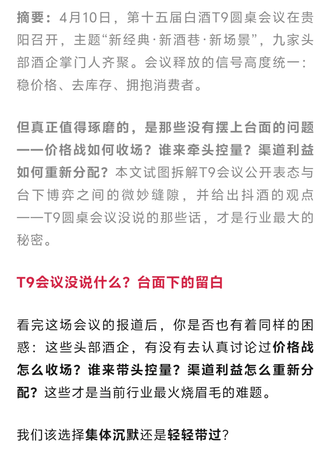 这个问题一旦摆上台面,就会出现巨大分歧。茅台有底气做代售制,因为它的品牌力够强。但那些还在靠经销商压货的品牌呢?它们有资本跟吗?