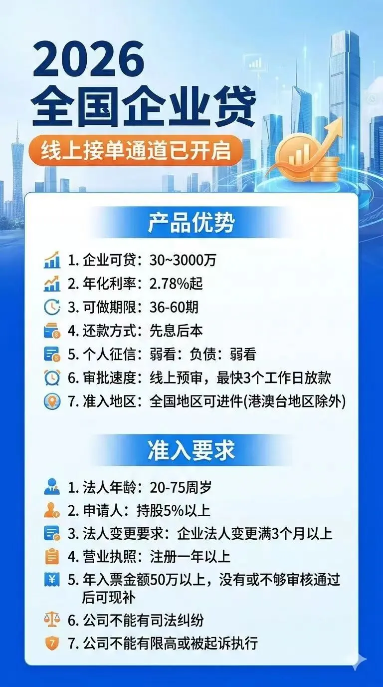 2026年,我国实体经济持续复苏,金融支持中小微企业政策不断加码,银行信贷渠道持续优化,普惠金融服务效能显著提升。为切实缓解企业融资难题,多家银行推出专项经营贷款产品,通过线下专属渠道与简化审批流程,为经营稳健、信用良好的市场主体提供高效、低成本的资金支持。