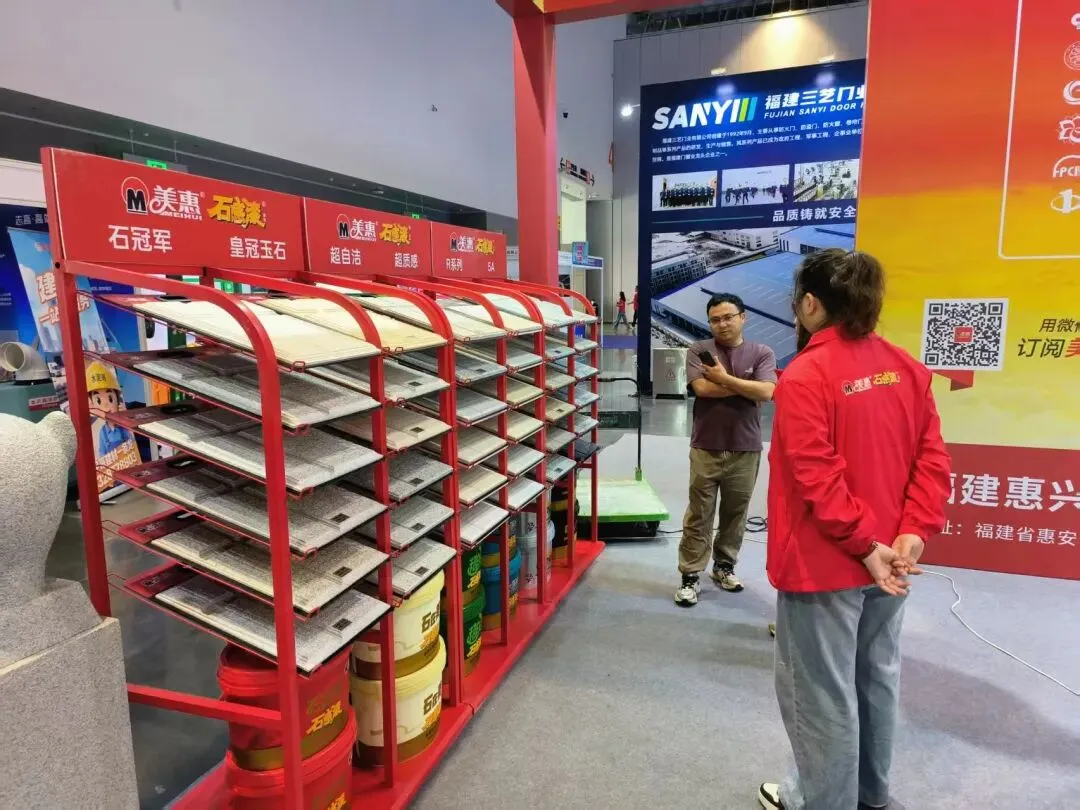 其中,惠兴涂料旗下“美惠”石感漆十二生肖展品凭借独特创意与出色质感,成为展会热门打卡点,吸引大批观众、尤其是年轻群体驻足观赏、拍照留念,现场咨询产品的客商与市民络绎不绝,收获超高人气。