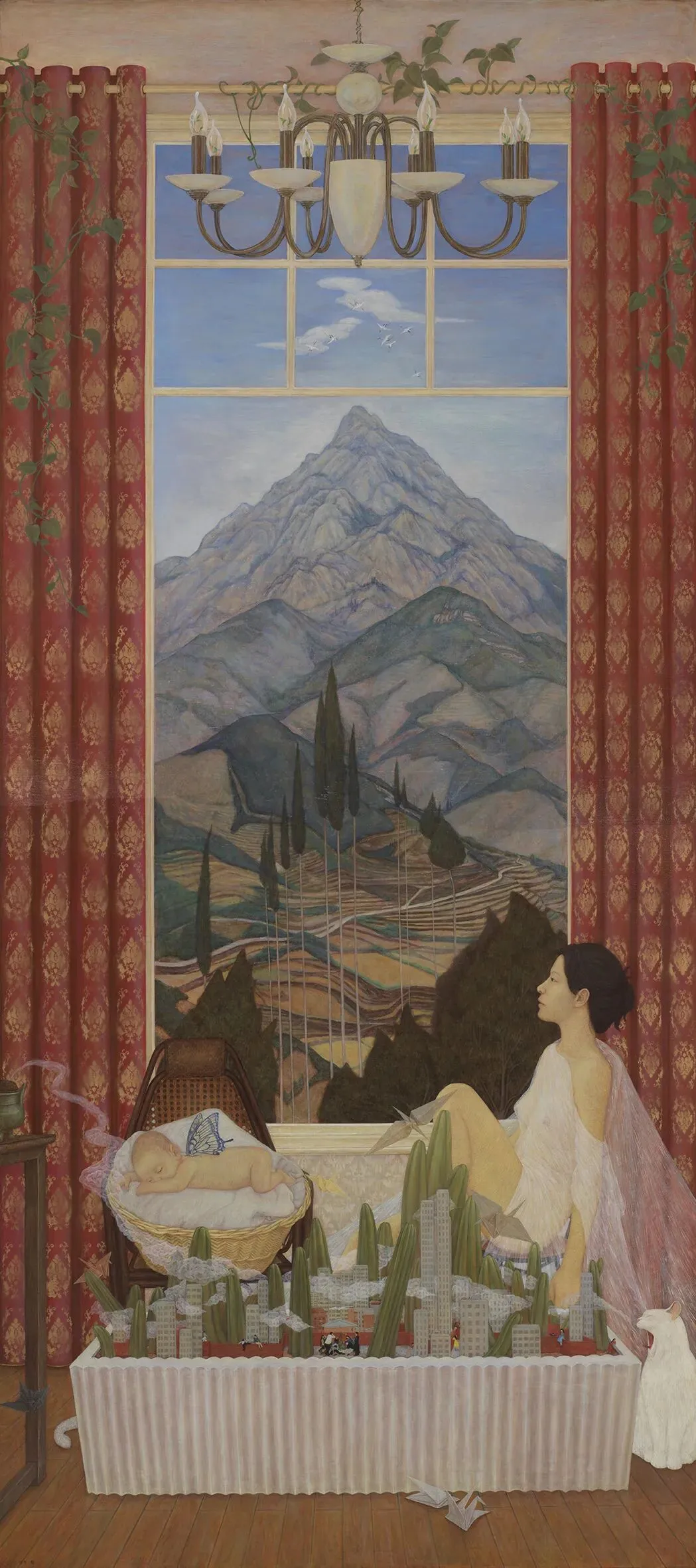 任得智 盆景里的共生诗之二 280×127cm 油性坦培拉 2025