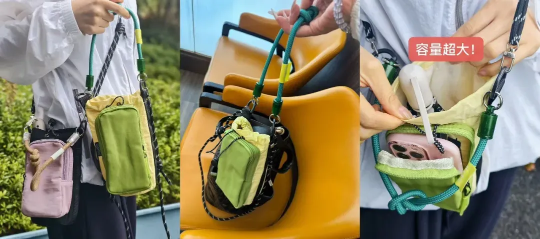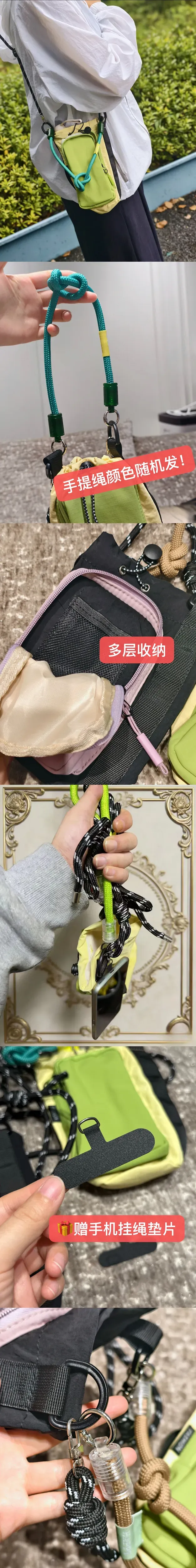 看着小巧轻盈,其实巨能装,手机、水杯、遮阳伞、气垫、钥匙...通通拿下!尼龙材质,自重很轻,摸起来软软糯糯的,脏了擦擦就可以,打理起来很省心。肩带长度可调节,单肩背也不会溜肩,给肩膀减少负担。逛街、野餐、上班通勤,解锁各个场景,耐造不心疼~
