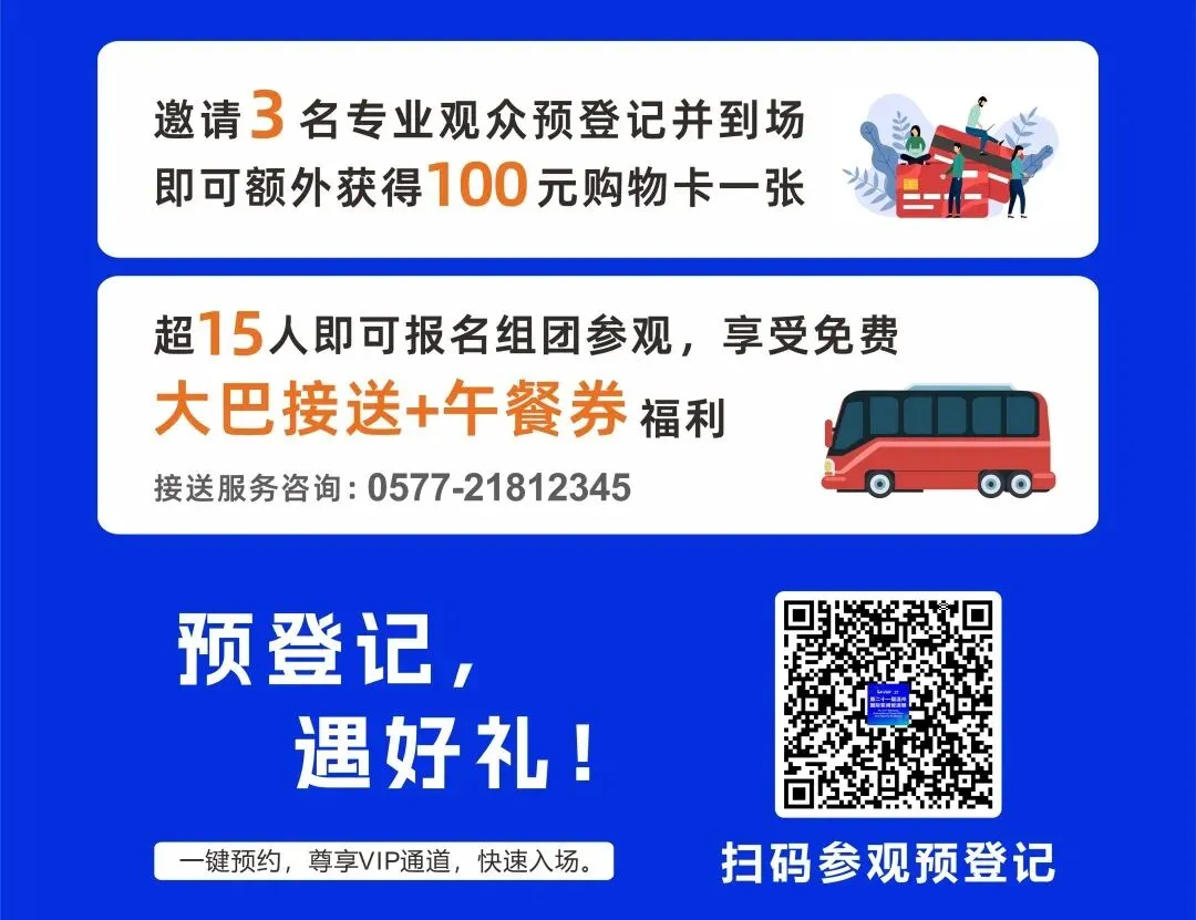 一键预约,尊享VIP通道,快速入场。点击上图即可进入参观预登记,参观更高效。分享您的专属链接,邀请好友一起逛展,还可领取100元购物卡噢!