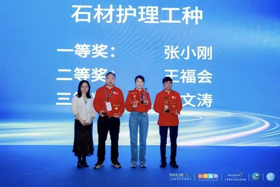 石材护理项目可不是简单的清洁,它涵盖了石材的专业清洁、日常保养、损伤修复等核心技能,对专业性和实操性要求极高。为了公平、专业地完成评审工作,我司特意派出项目总监徐俊斌先生亲临赛场执评,以资深专业视角,为这场顶尖赛事严格把关。