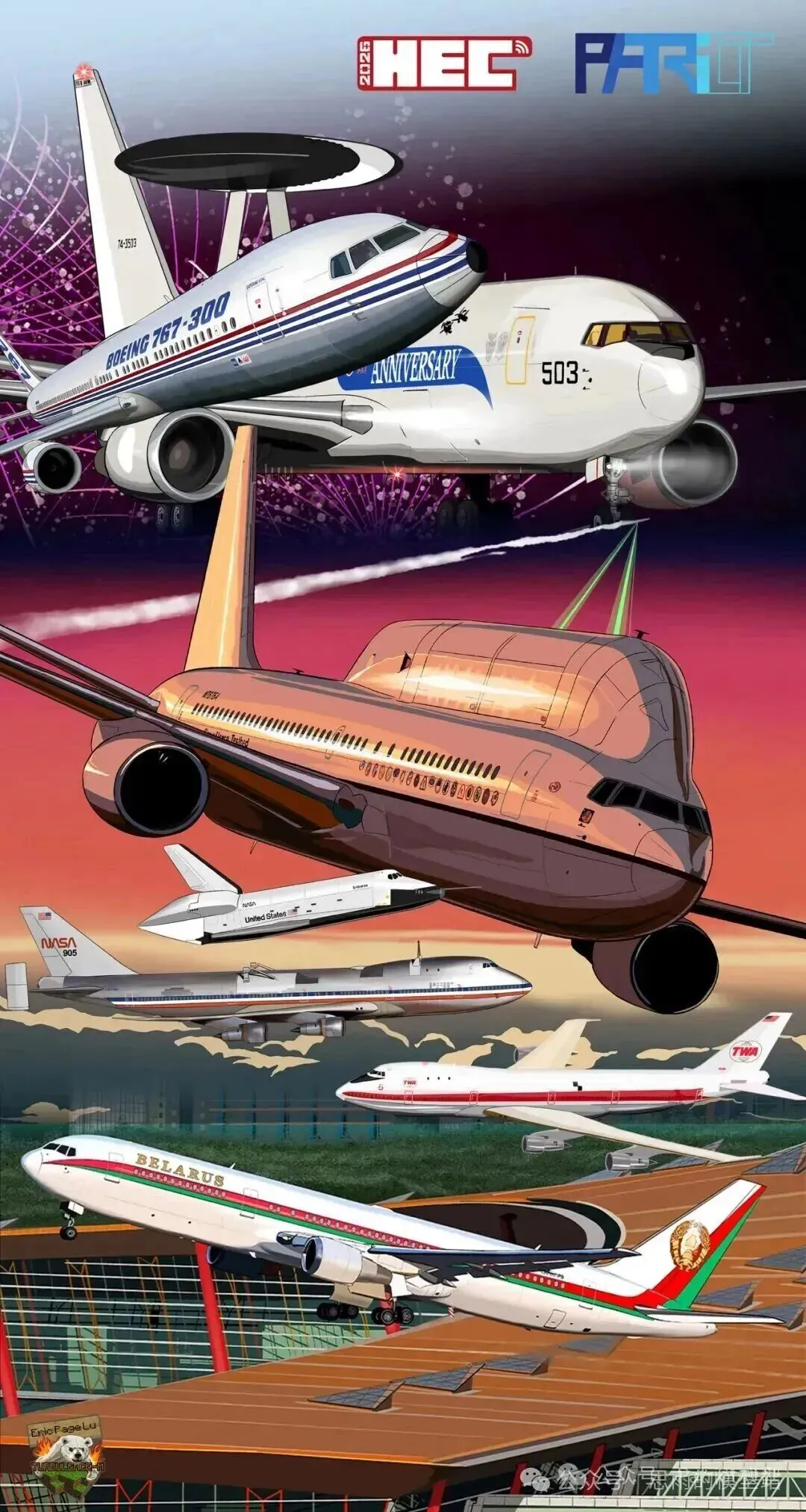 全新767-200(AST)导弹观测机 波音 E-767预警机 波音767-300 首飞原型机 白俄罗斯767-300政府专机 安-12 苏联“电子战测试平台”样板 1/200 TU-134UBL教练机“黑珍珠”样板 及多款经典往期产品现场展出