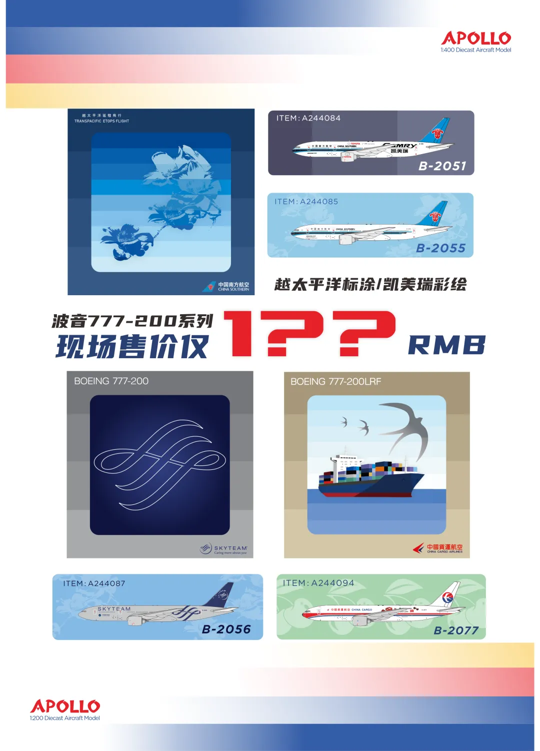 (1:400) 上海航空 787-9 B-1111 上航运营的第100架飞机 典藏版500盒(配限量卡) / 标准版500盒(无限量卡)、(1:400) 纪念运-20B飞越天安门广场套装(200套)、数百款热门产品、 多款新模具样机展示