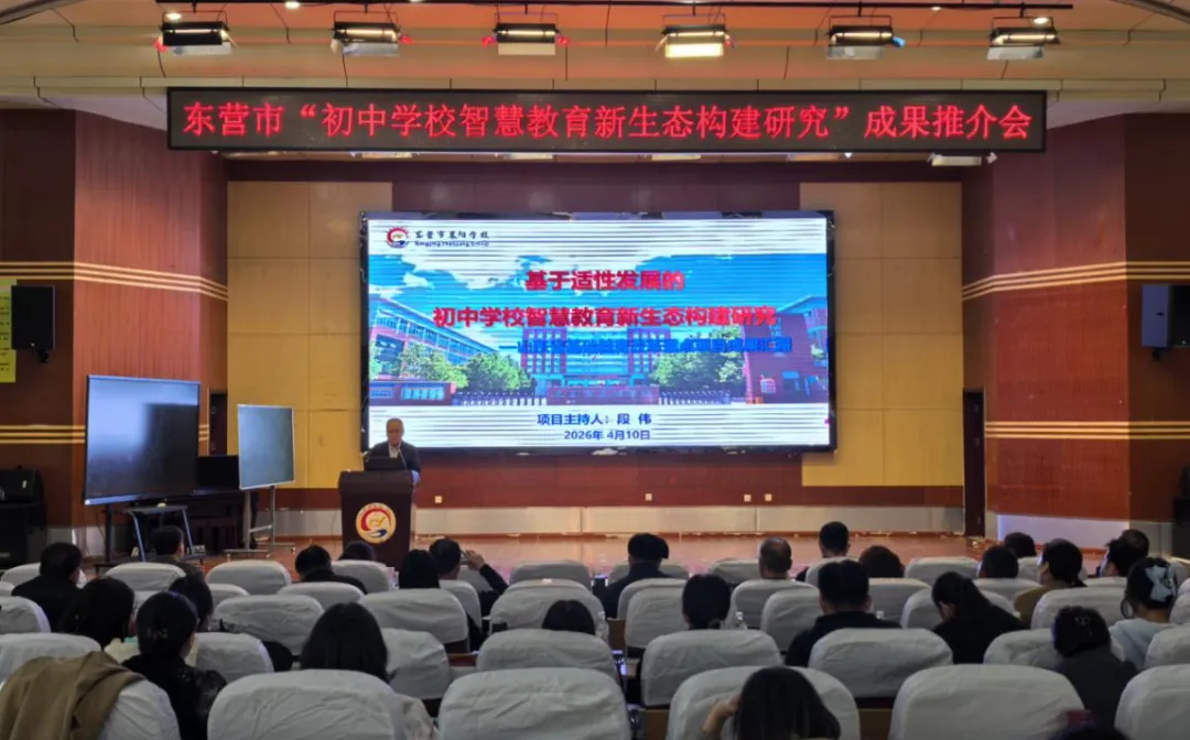 为总结推广智慧教育实践经验,搭建校际交流协作平台,持续深化全市教育数字化转型,4月10日,全市“初中学校智慧教育新生态构建研究”成果推介会在东营市晨阳学校举办。