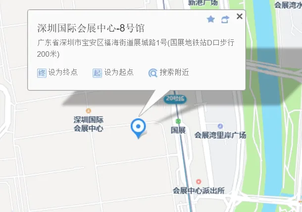 12号线/20号线国展站C1/C2口,国展北站D口,直达深圳国际会展中心。