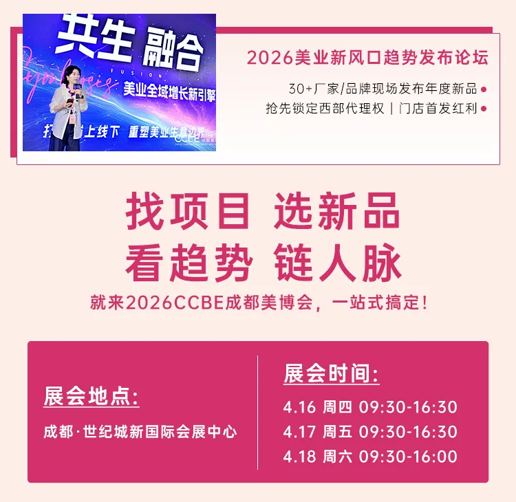 CCBE成都美博会(简称CCBE),UFI成员, 作为连续举办28年51届的美容展,与CBE、CosmoprofAsia、SCBE联合成为Informa Markets集团旗下在中国的四大美妆展,串联全球美丽资源。其以28年的专业服务力及行业影响力,被业界誉为中国西部美业的风向标;成都占据中国西部核心地位,CCBE立足成都,辐射中国西部,每年春秋两届的行业盛会,已成为众多海内外企业开拓中国西部美妆市场的必选平台。