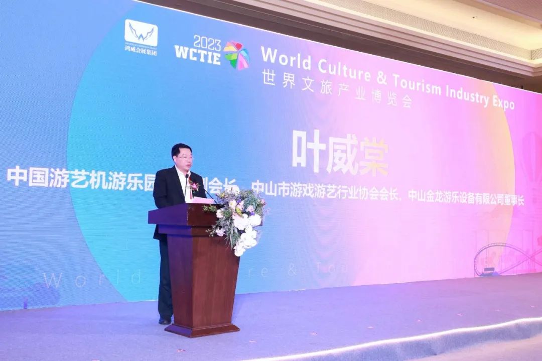 中国游艺机游乐园协会副会长,中山市游戏游艺行业协会会长、中山金龙游乐设备有限公司董事长叶威棠先生致词