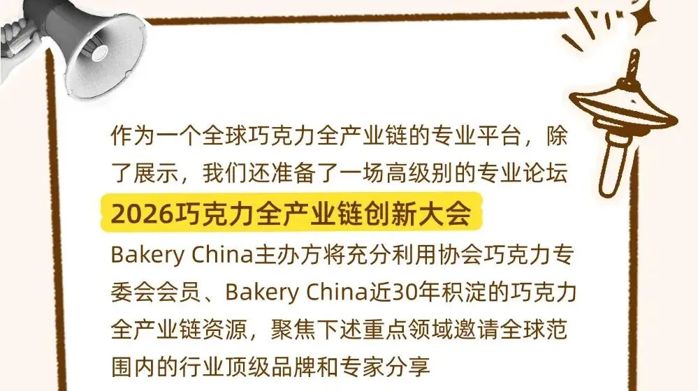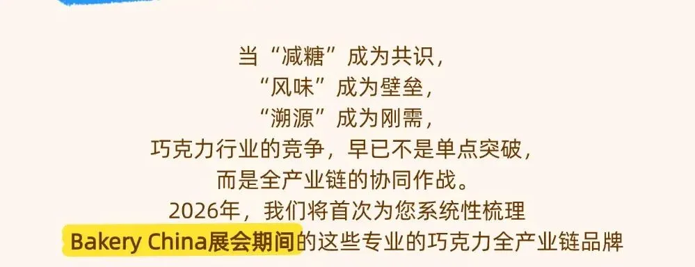 2026中国巧克力产业展览会作为第28届中国国际焙烤展览会(Bakery China 2026)的重要展区,将于5月20-23日在上海国家会展中心盛大举办。