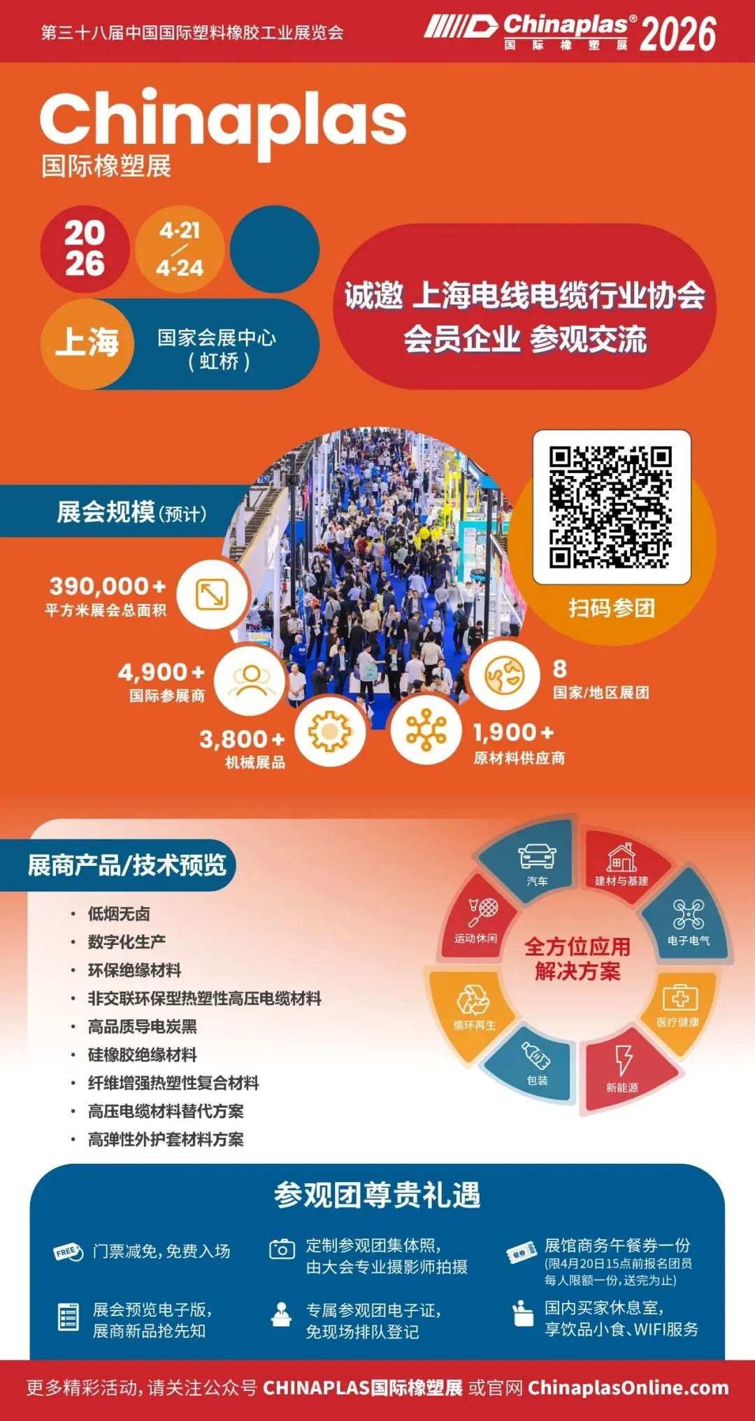 第三十八届中国国际塑料橡胶工业展览会(CHINAPLAS 2026 国际橡塑展),将全面展示循环经济、数字化与人工智能、创新材料及中国高端科技等塑料与橡胶的创新前沿解决方案,为你一次性呈现从原材料、机械设备到制造工艺的“最优答案”!