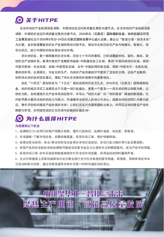 展会预定中:2026华北国际缝制设备、纺织机械及印花工业展览会