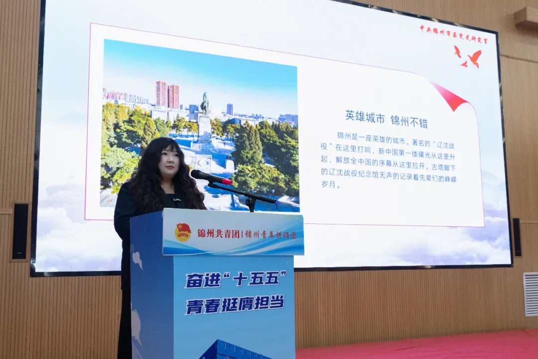 锦州市青年讲师团成员、市委党史研究室的闫妍没有急着讲大道理,而是从张慧忠的相机、朱瑞的炮火说起,他们都是在锦州这片土地上流尽最后一滴血的。她把那段血与火的历史,拉到了焊花飞溅的车间里:“他们没有看到新中国成立的那一天,但用自己的一切,让我们看到了今天的和平。”