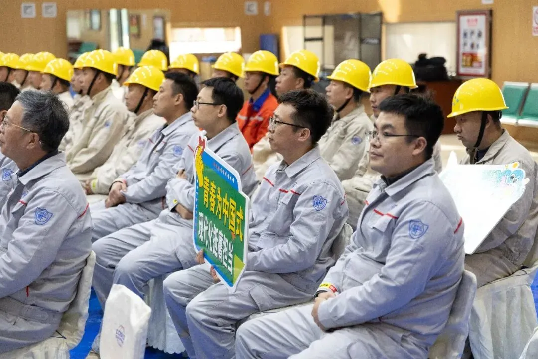 台下很安静。一位戴着安全帽的年轻工人轻轻碰了碰身边的同事:“咱们干的活儿,跟先辈比,还喊什么累。”