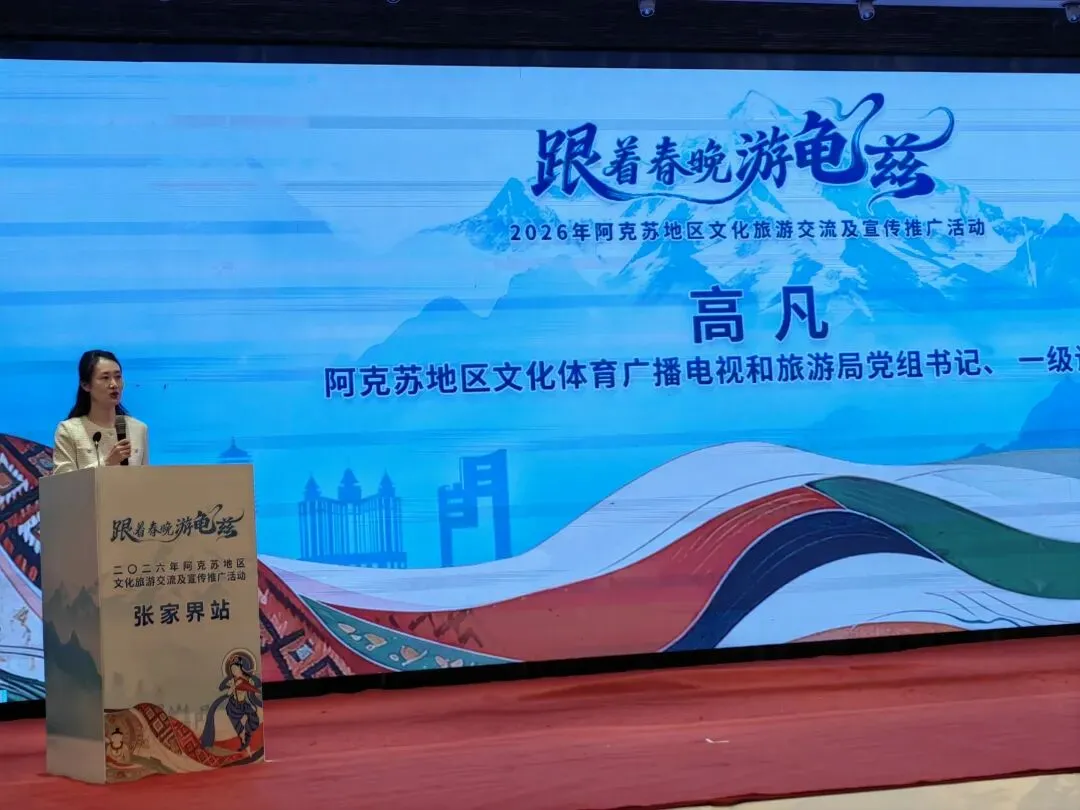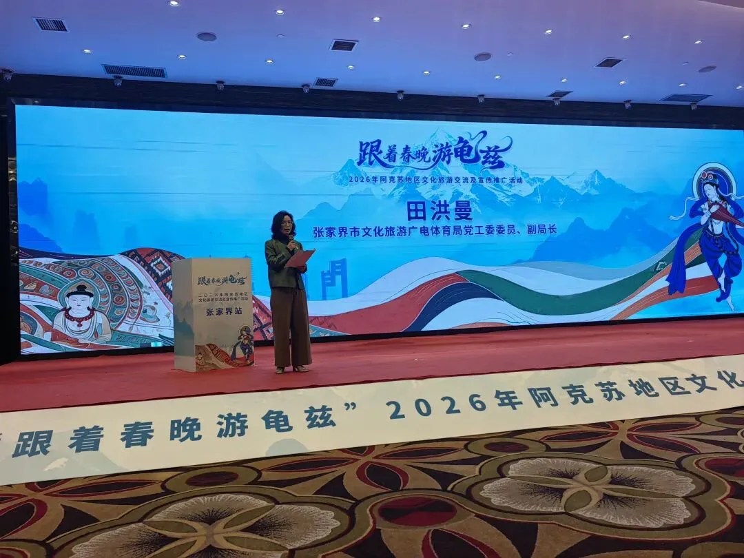 4月13日上午,“跟着春晚游龟兹”2026年新疆阿克苏地区文化旅游交流及宣传推广活动(张家界站)成功举办。阿克苏、张家界两地文旅界共赴丝路之约,共话合作新篇。