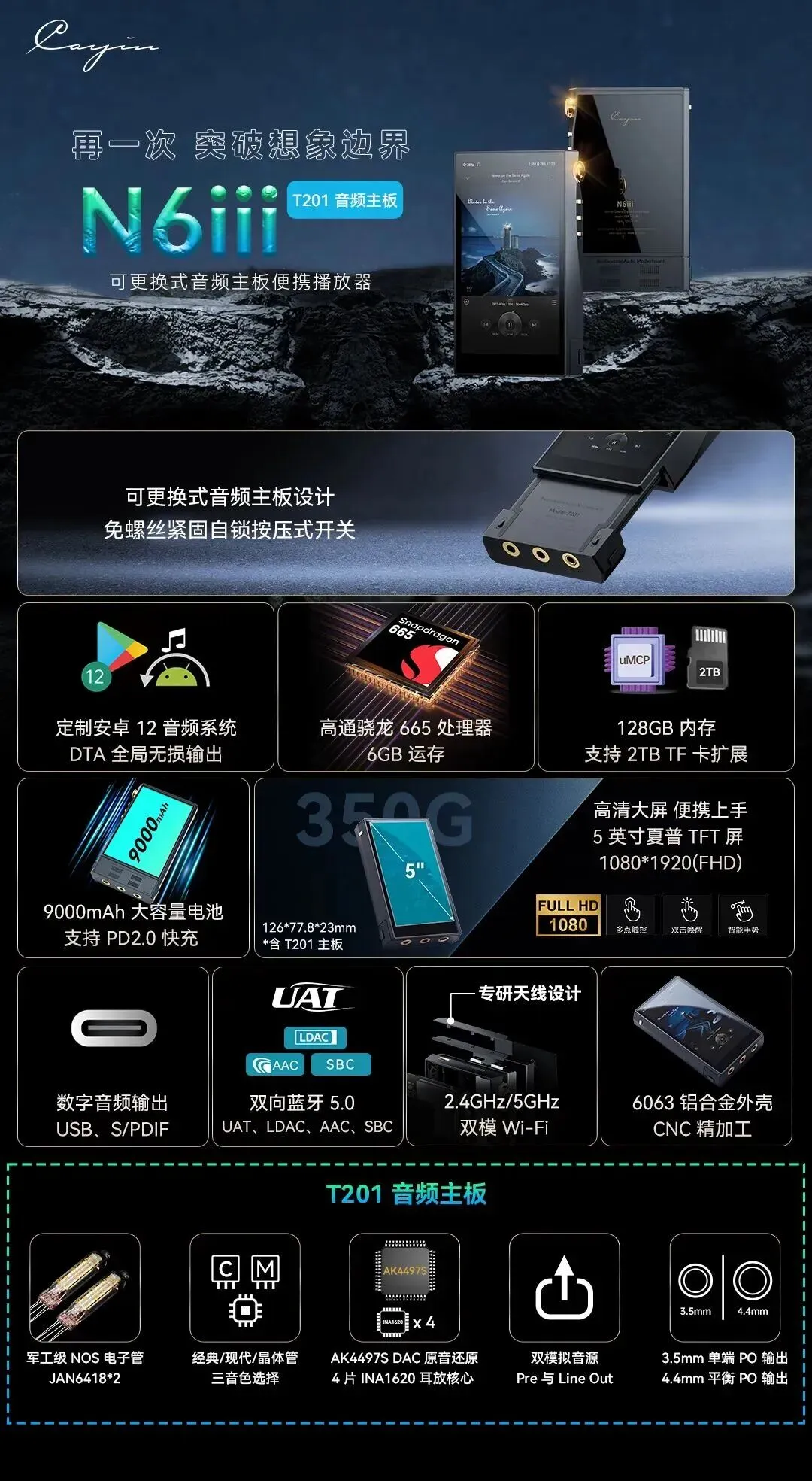 N6iii 便携播放器,新一代可更换音频主板设计,可根据喜好和需求,轻松更换不同的音频主板,实现一机多音色!