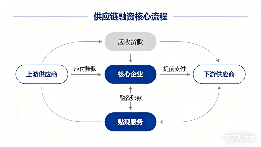 核心企业牵头确权→上下游多级供应商统一入池融资→你司做居间+贸易落地。