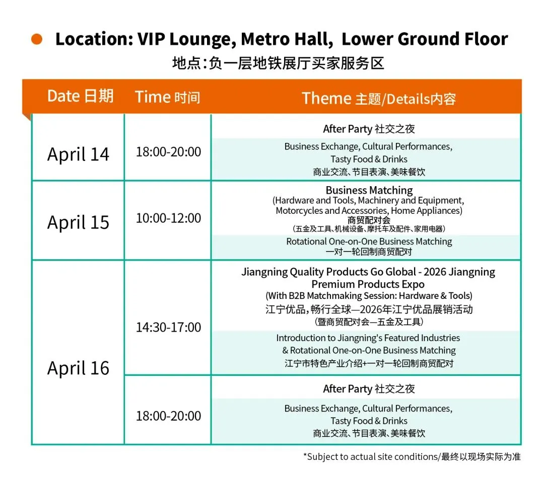 为展商与海外买家特别打造的商务社交盛宴,让供需双方在轻松的音乐、美食与互动中,完成一场场非正式洽谈。让社交更有价值、成交更有温度。