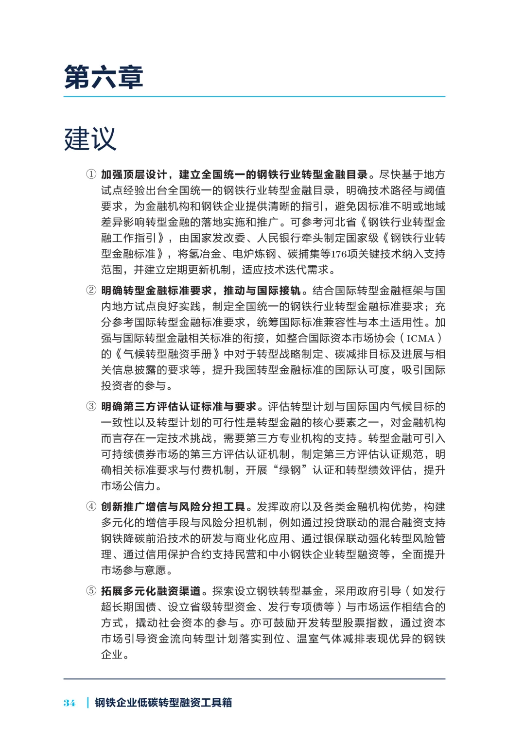 基于此,报告构建融资工具箱,按“企业类型 - 降碳路径 - 融资工具”匹配,如央/国企长流程企业适配多元工具,民企短流程企业需政策与市场协同支持。同时建议加强顶层设计,出台全国统一转型金融目录;明确标准与第三方认证要求;创新增信与风险分担工具;拓展融资渠道;强化产业政策联动,推动产业链协同转型,助力钢铁行业低碳转型。