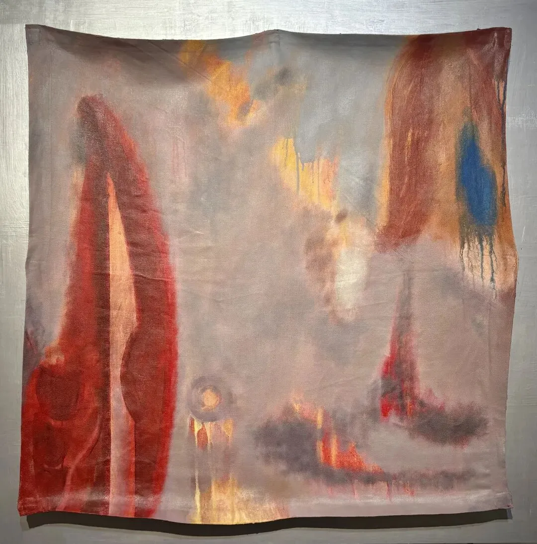 近年来,金阳平愈发跳脱出常规画布的束缚,开始在极具文明指向的材料上进行实验。然而画面又是带有炙热感的视觉刺激与大量冰冷孤影的交织。这种身在其中又试图与之保持游离关系,或者说脱离感的张力,正是无数个体参与其中又不得不寻求喘息的时代面貌。绚烂而热烈的红爱憎分明;灰则是寂寥的,可黑可白。