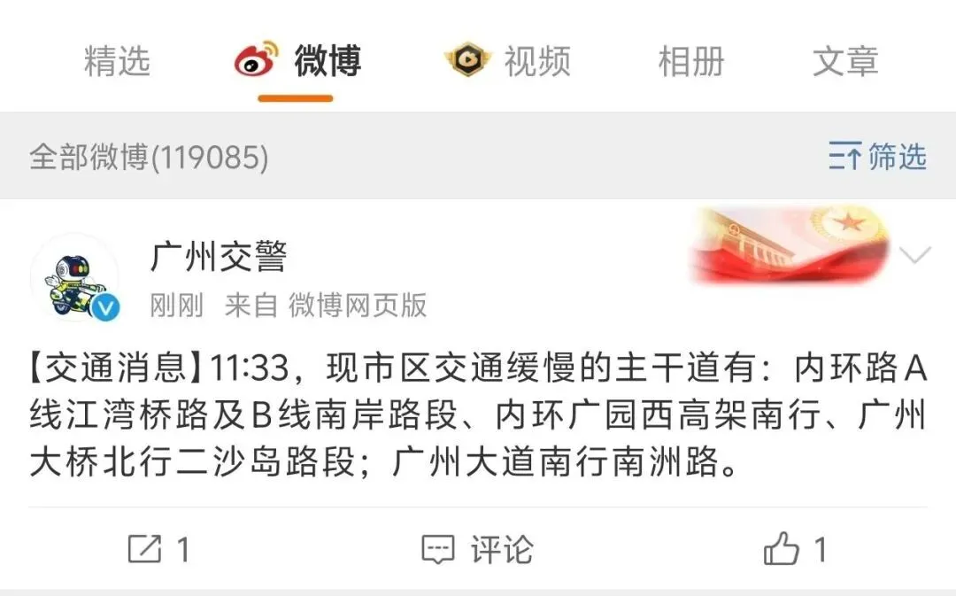 广交会期间,部分路段实施临时交通管制。请广大市民朋友理解和配合,听从现场交警和工作人员指引,文明、规范驾驶。