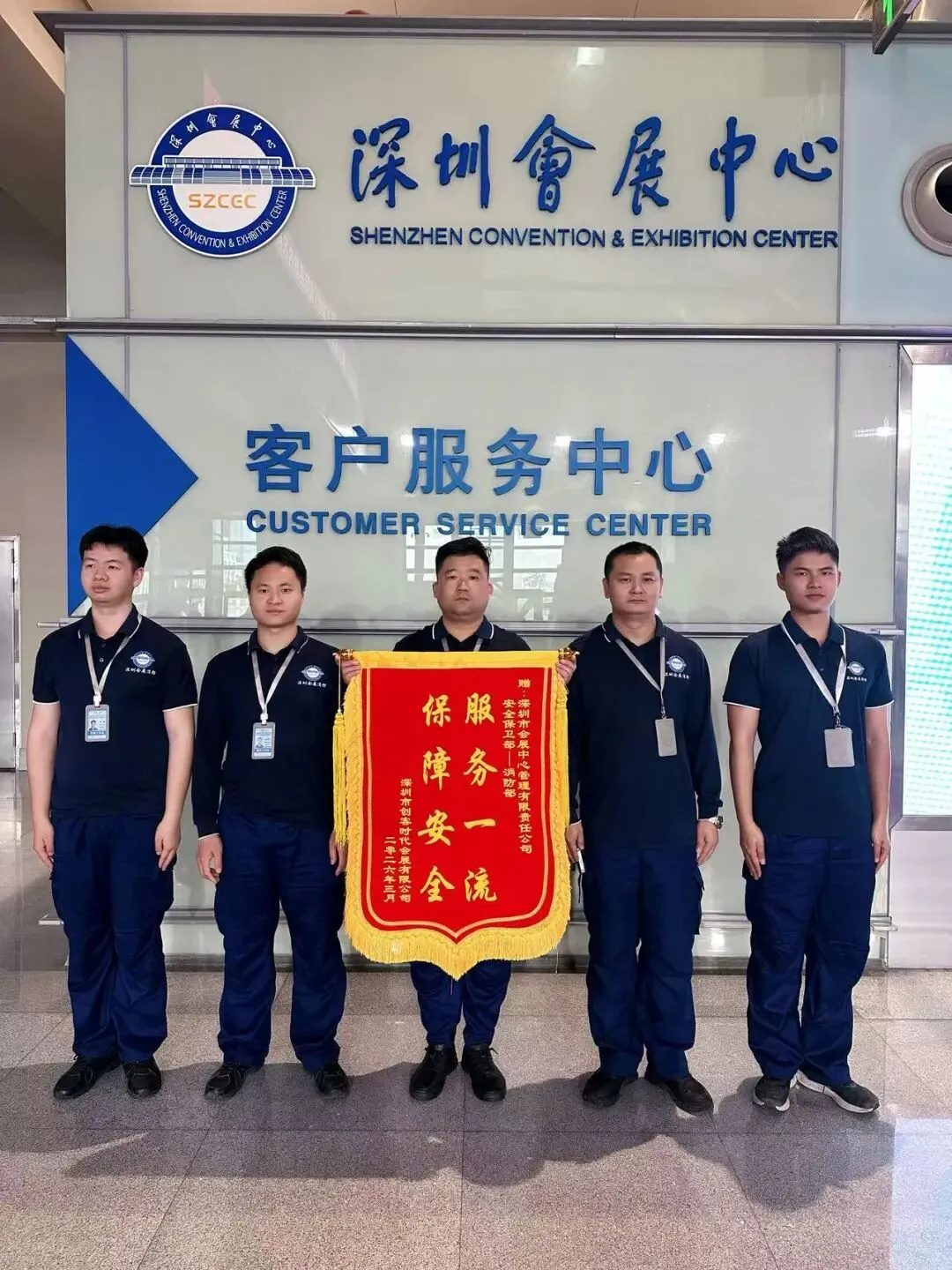 2026年粤港澳大湾区(深圳)婚博会(春季)布展期间,国贸科技园公司会展中心项目物业消防团队聚焦展位施工搭建,紧盯施工动火作业、用电规范、消防设施配备等关键环节,全程巡查督导、排除隐患,从严从细落实消防安全监管举措,以严谨专业的工作态度和扎实到位的安全保障,赢得主办方深圳市创客时代会展有限公司的高度认可并获赠“服务一流,保障安全”锦旗。