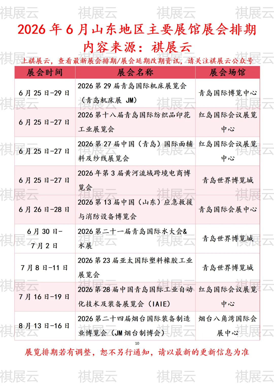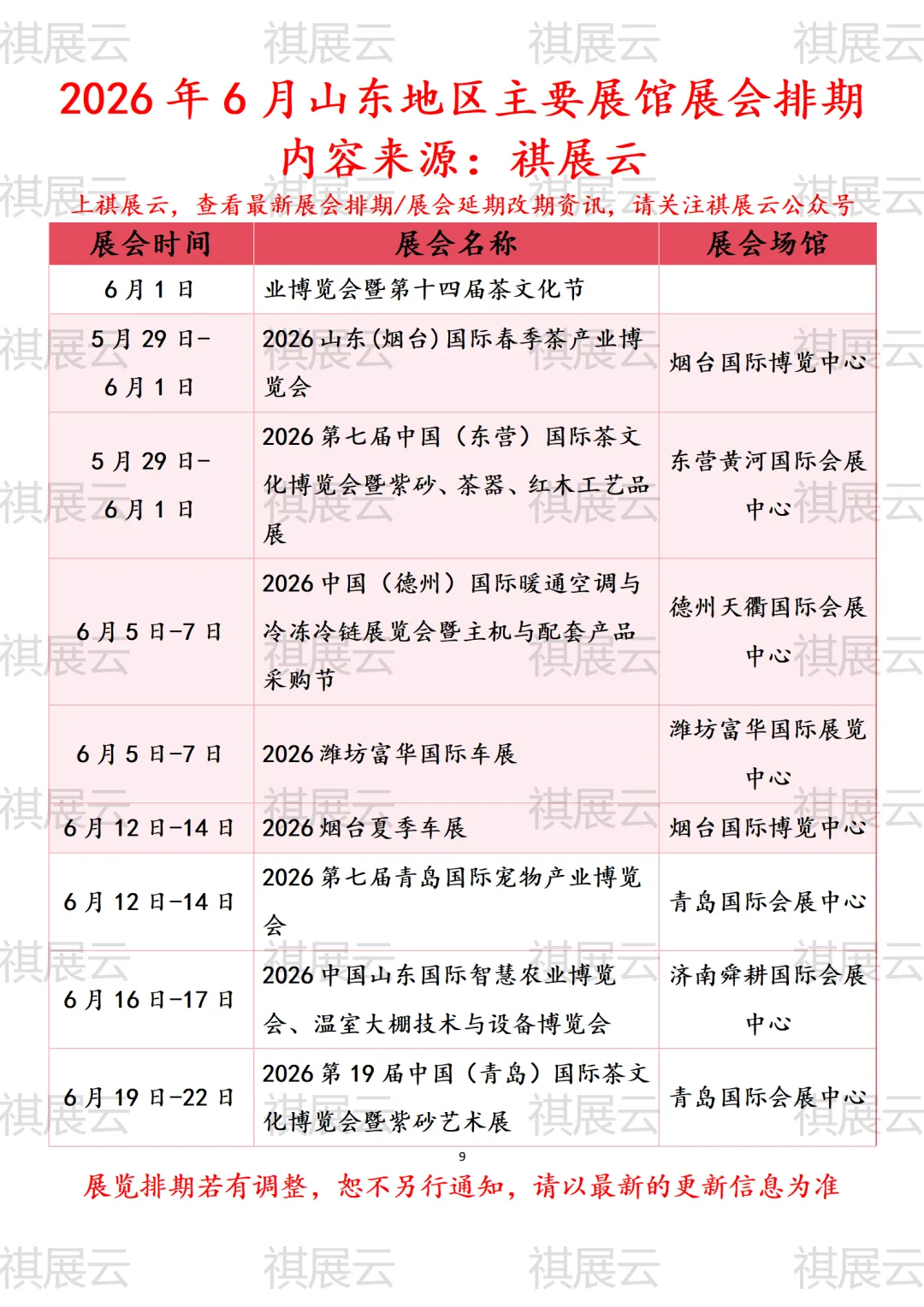 会展资讯丨山东(济南/青岛/临沂/威海/烟台/潍坊/广饶/德州)地区主要展馆2026年6月时间表
