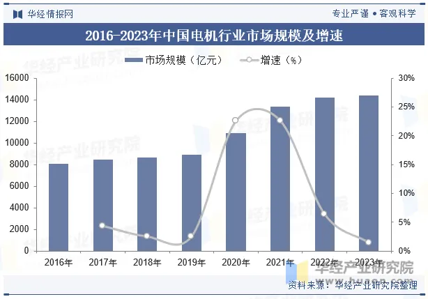 电机是清洁电器的核心部件之一,主要负责提供动力和吸力。在吸尘器中,电机通过旋转产生吸力,驱动吸头进行清洁工作。电机的转速和功率直接影响清洁电器的清洁效率和噪音水平。受益于国家产业政策的扶持以及市场需求的持续增长,我国电机市场规模持续扩张。据统计,2016年我国电机市场规模约为8090.42亿元,2023年增长至14426.36亿元,复合年增长率为8.6%。