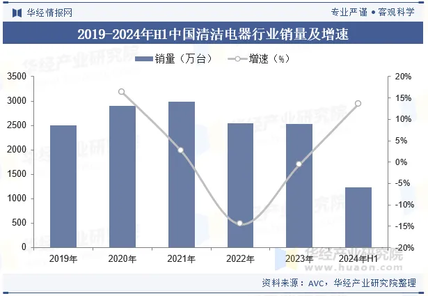 清洁电器在国内市场还处于普及率偏低、市场关注度较高的阶段,近年来清洁电器蓬勃发展,已成为家电行业“明星品类”。数据显示,2023年,我国清洁电器市场销量达2534万台,2024年上半年销量为1241万台,同比增长13.6%。