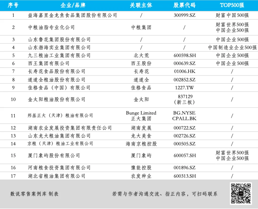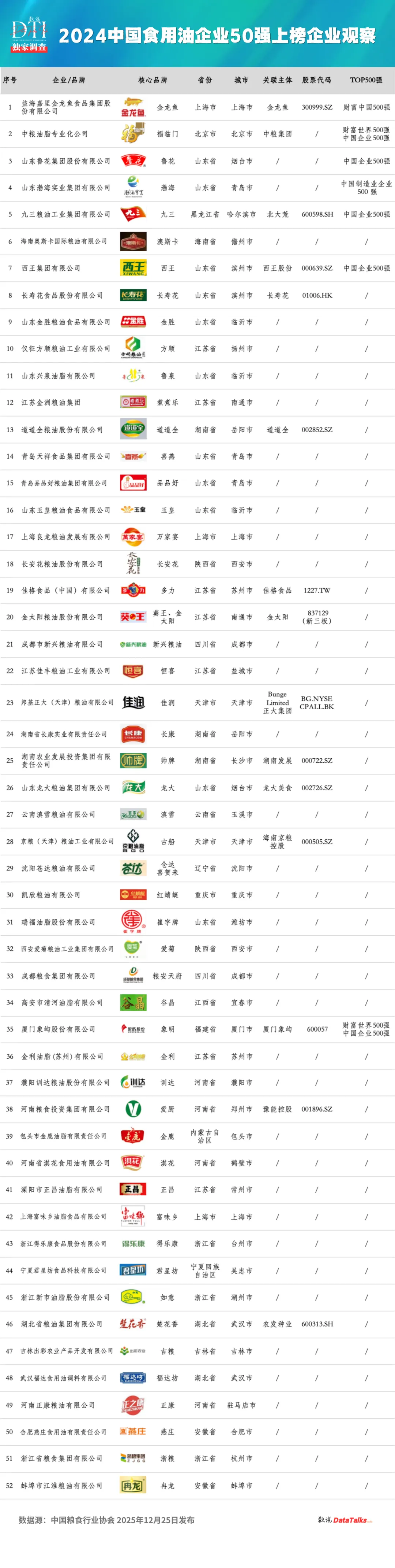 独家调查 | 中国食用油企业50强:产粮大省为何留不住行业巨头?
