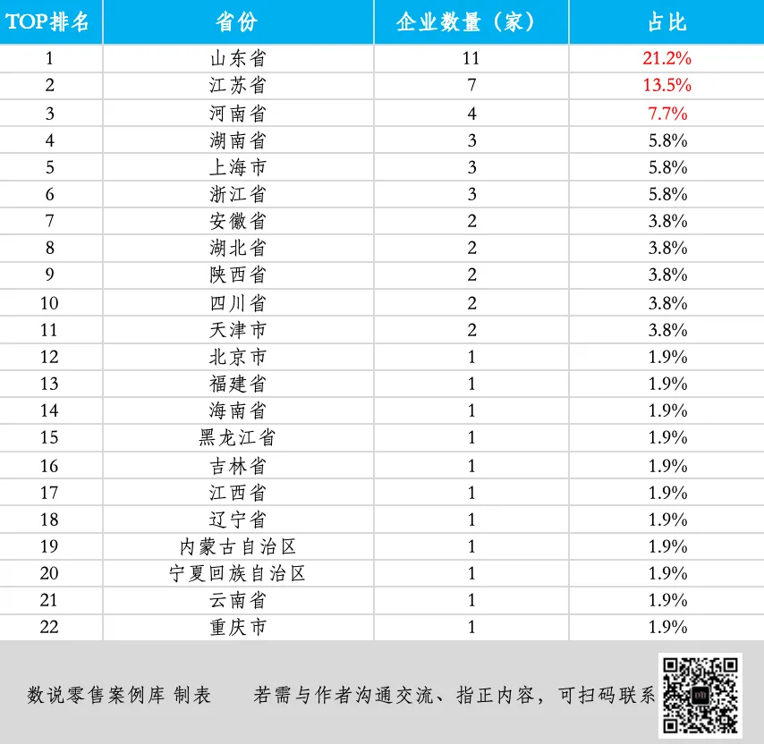 山东11家、江苏7家、河南4家,三省包揽全国42%的头部企业。