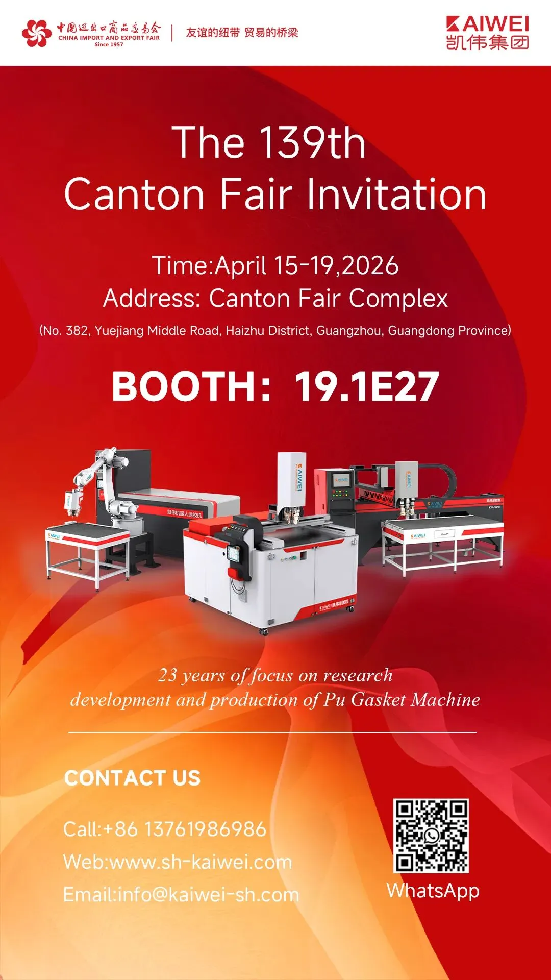 4 月 15 日,为期 5 天的第 139 届中国进出口商品交易会(广交会)将在广州琶洲国际会展中心展开。凯伟集团作为中国工业密封涂胶领域的领军企业,在 19.1E27 展位精彩亮相,面向全球采购商全面展示智能涂胶创新技术与跨场景解决方案。