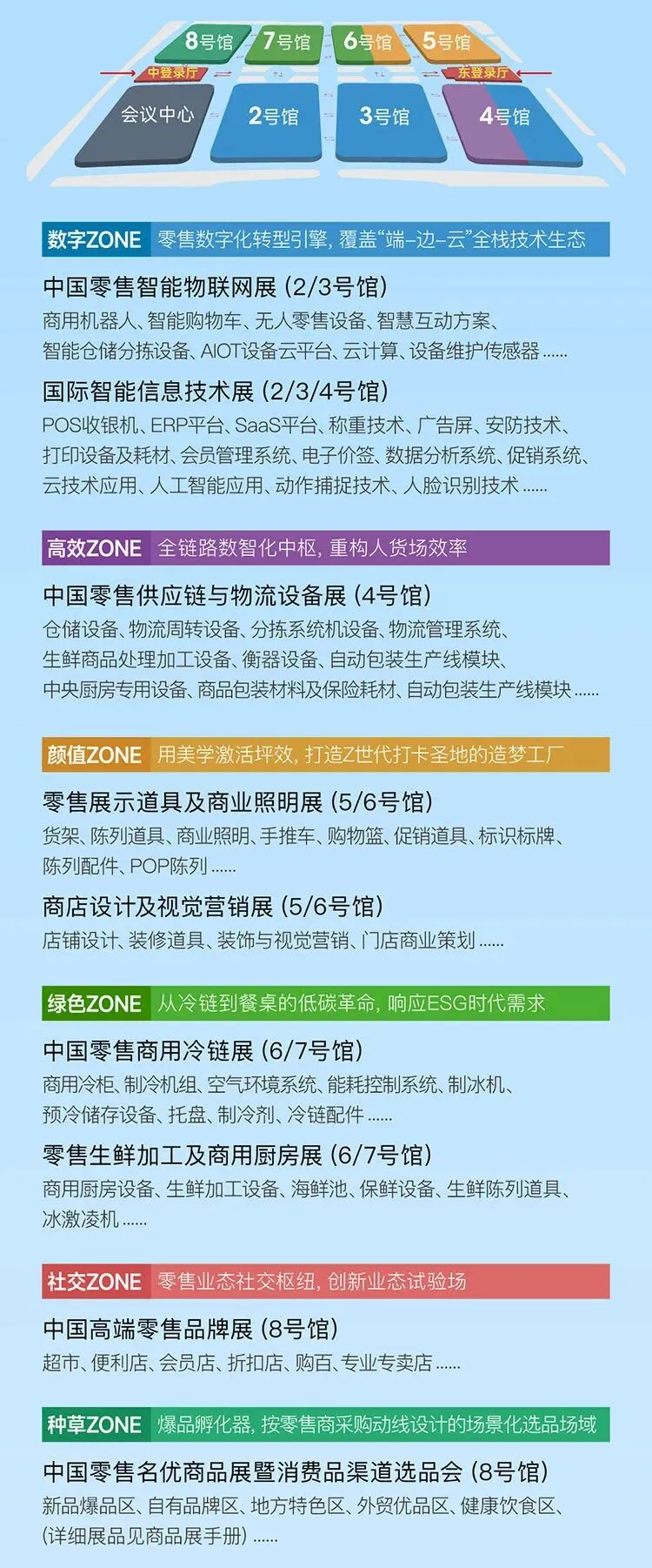 本次展会将继续以六大ZONE、9大主题子展,为优秀设施设备、尖端技术、创新解决方案、潮流商品与零售品牌提供最高效的展示交流空间。