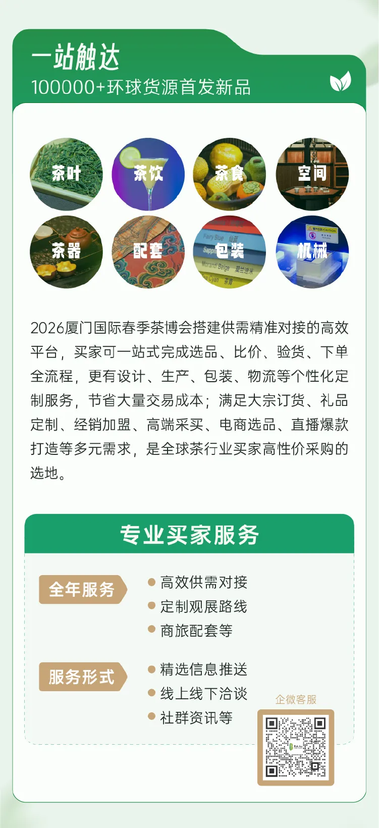 厦门国际茶博会历经17年的深厚积累,且持续关注消费动向,携手众多行业知名大牌、领军企业,通过提供个性化、专业化的健康服务或产品,满足消费者的多样化需求,实现快速盈利和可持续发展,不仅满足各大公司、终端企业的采购、集采、定制以及解决方案,更为各路电商平台、跨境电商、直播电商、私域、团购等各类买家提供一站式选品采购平台;对于茶行业的从业者、采购商、品牌商以及对茶产业市场感兴趣的各界人士来说,是不可错过的绝佳平台和机会。
