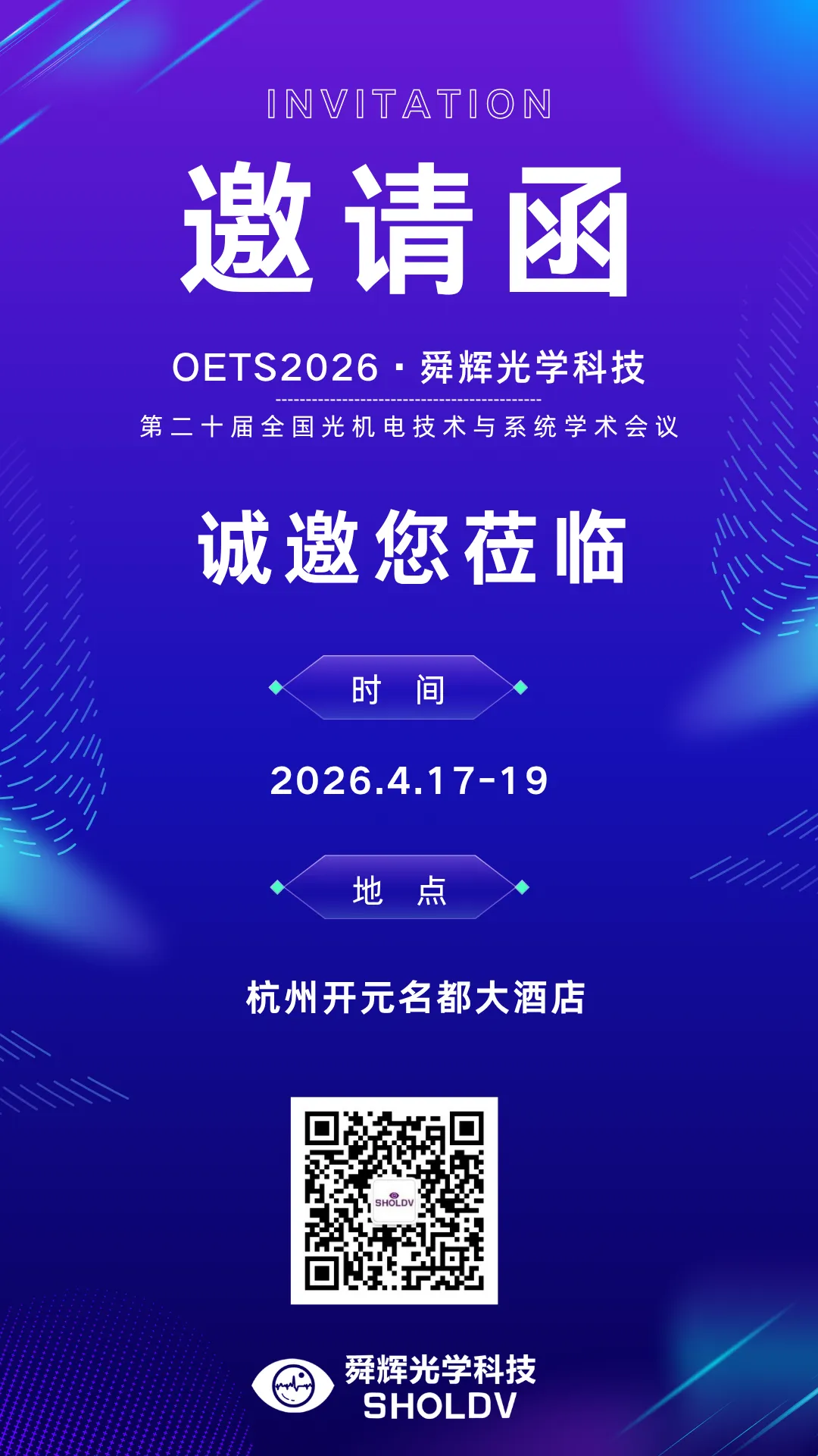 第二十届全国光机电技术与系统学术会议(OETS2026)定于 2026年4月17日-19日在杭州举办。会议由中国光学学会光电技术专业委员会、中国仪器仪表学会光机电技术与系统集成分会、中国兵工学会光学专业委员会、中国计量测试学会成像与显示计量测试分会联合主办。