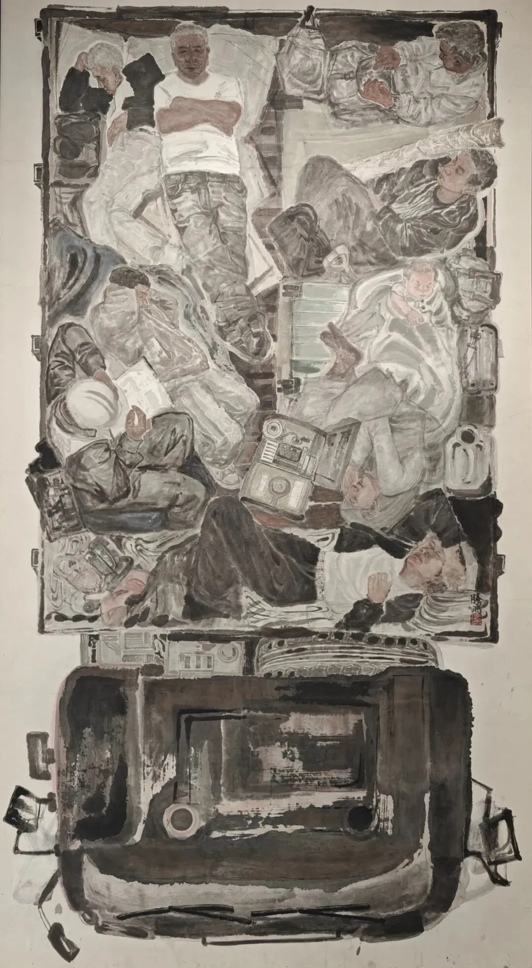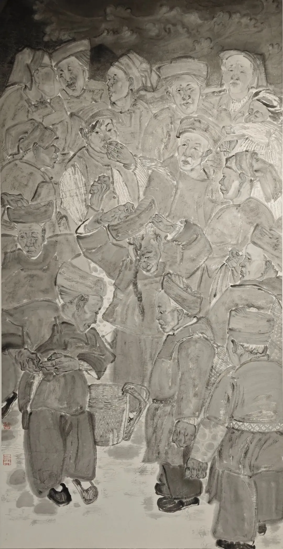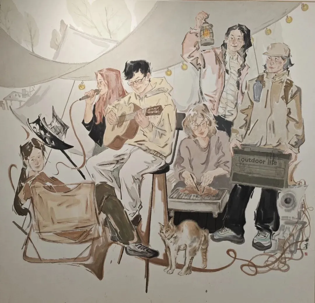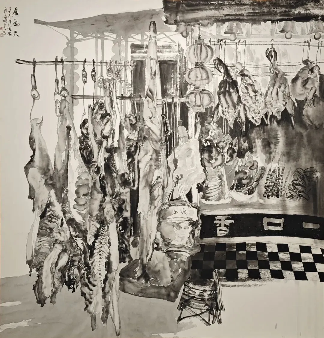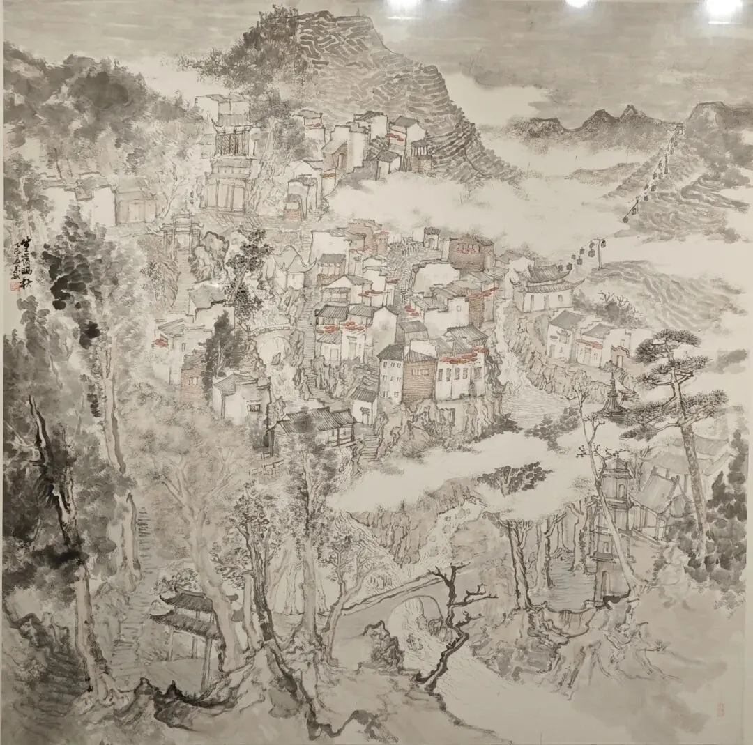 展品包罗万象,既有家国山河的壮丽画卷,也有市井烟火的温情瞬间;工笔、写意、重彩、水墨诸流派竞相绽放。作品既坚守长安画派“一手伸向传统,一手伸向生活”的治学精神,又融入AI辅助等当代科技元素,生动诠释了传统笔墨的当代表达。