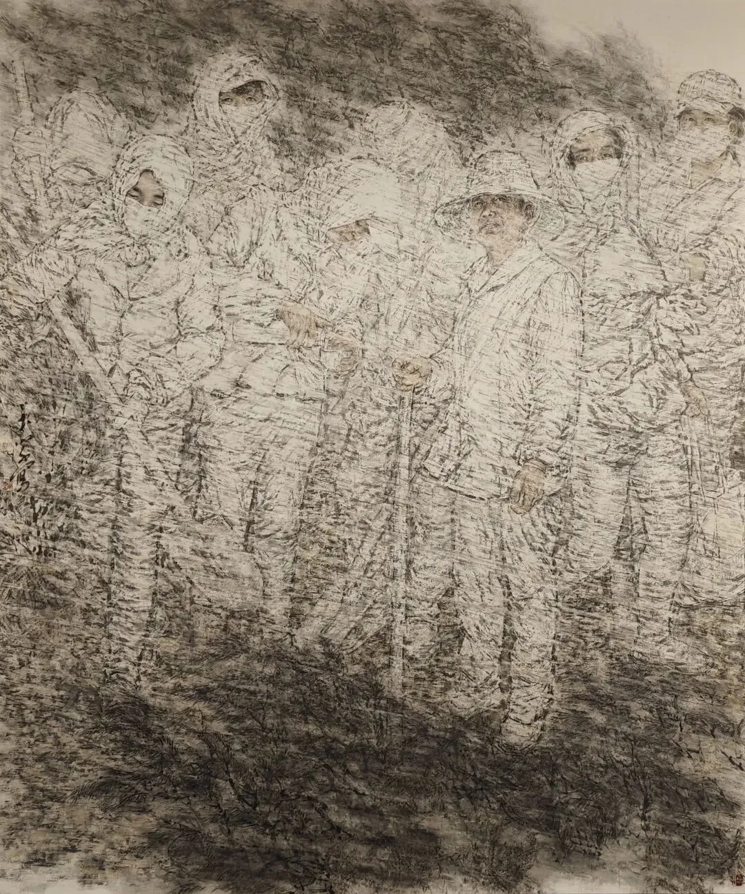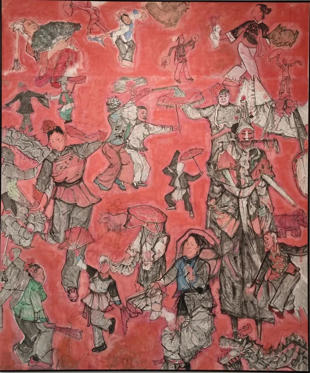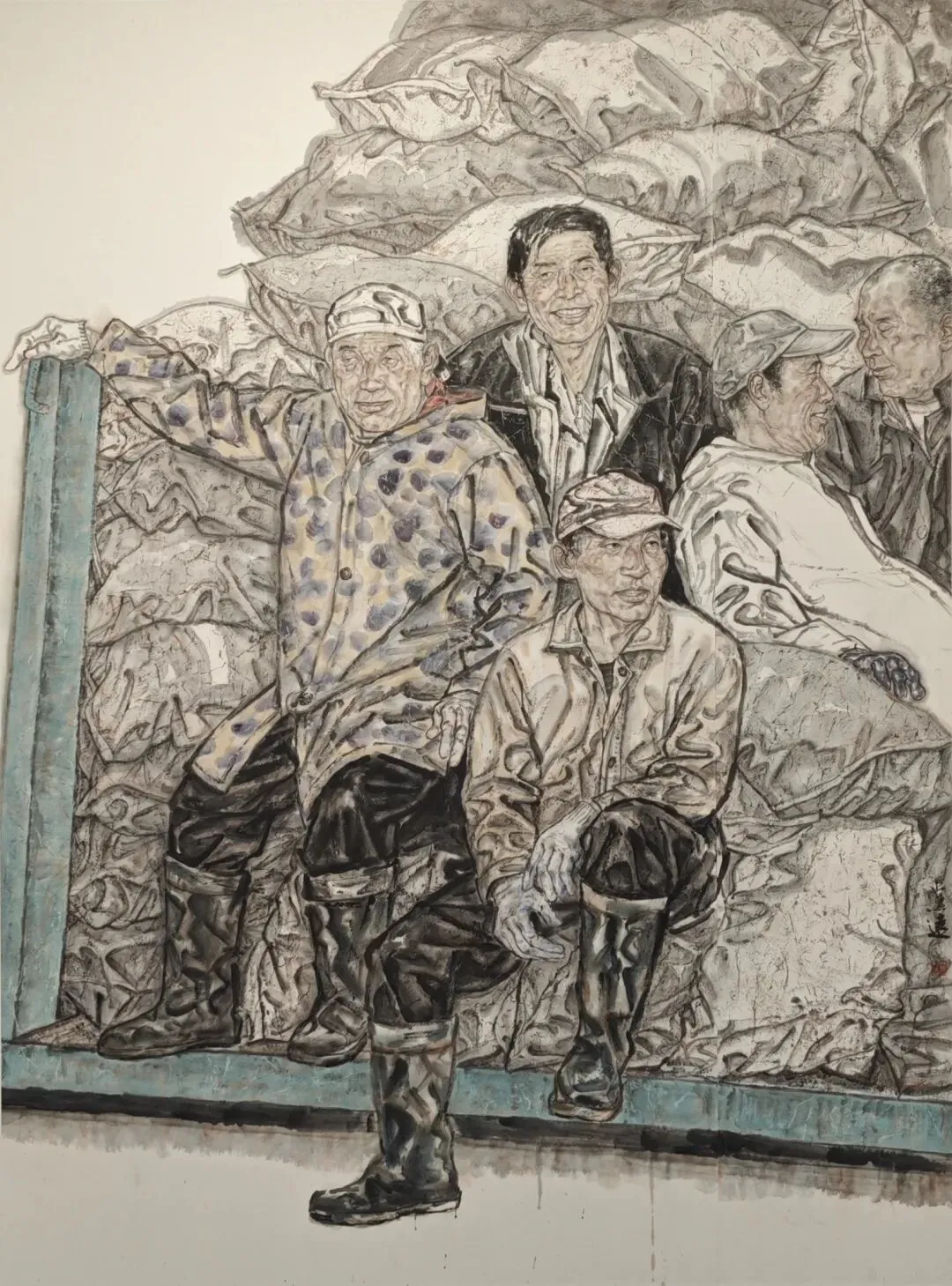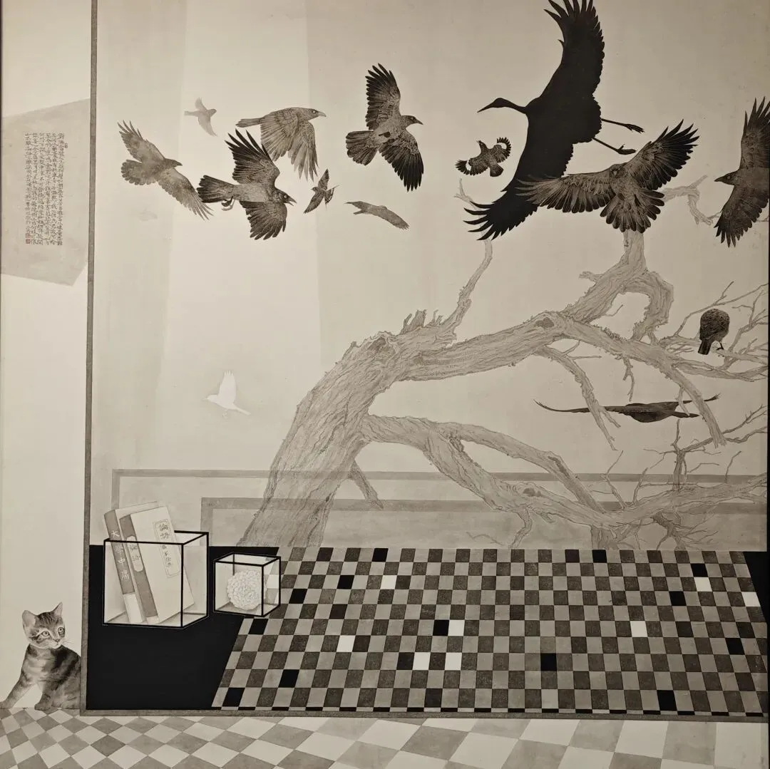 展品包罗万象,既有家国山河的壮丽画卷,也有市井烟火的温情瞬间;工笔、写意、重彩、水墨诸流派竞相绽放。作品既坚守长安画派“一手伸向传统,一手伸向生活”的治学精神,又融入AI辅助等当代科技元素,生动诠释了传统笔墨的当代表达。
