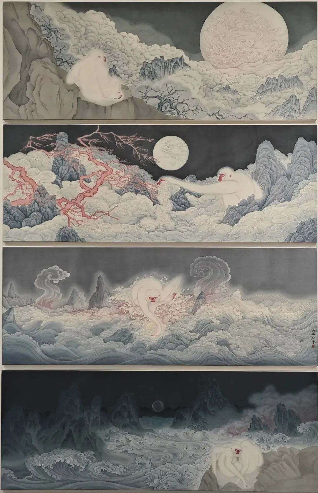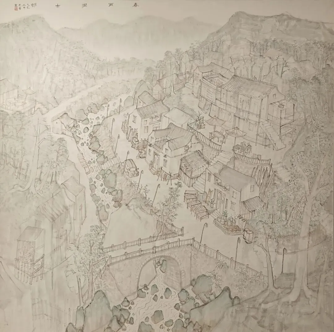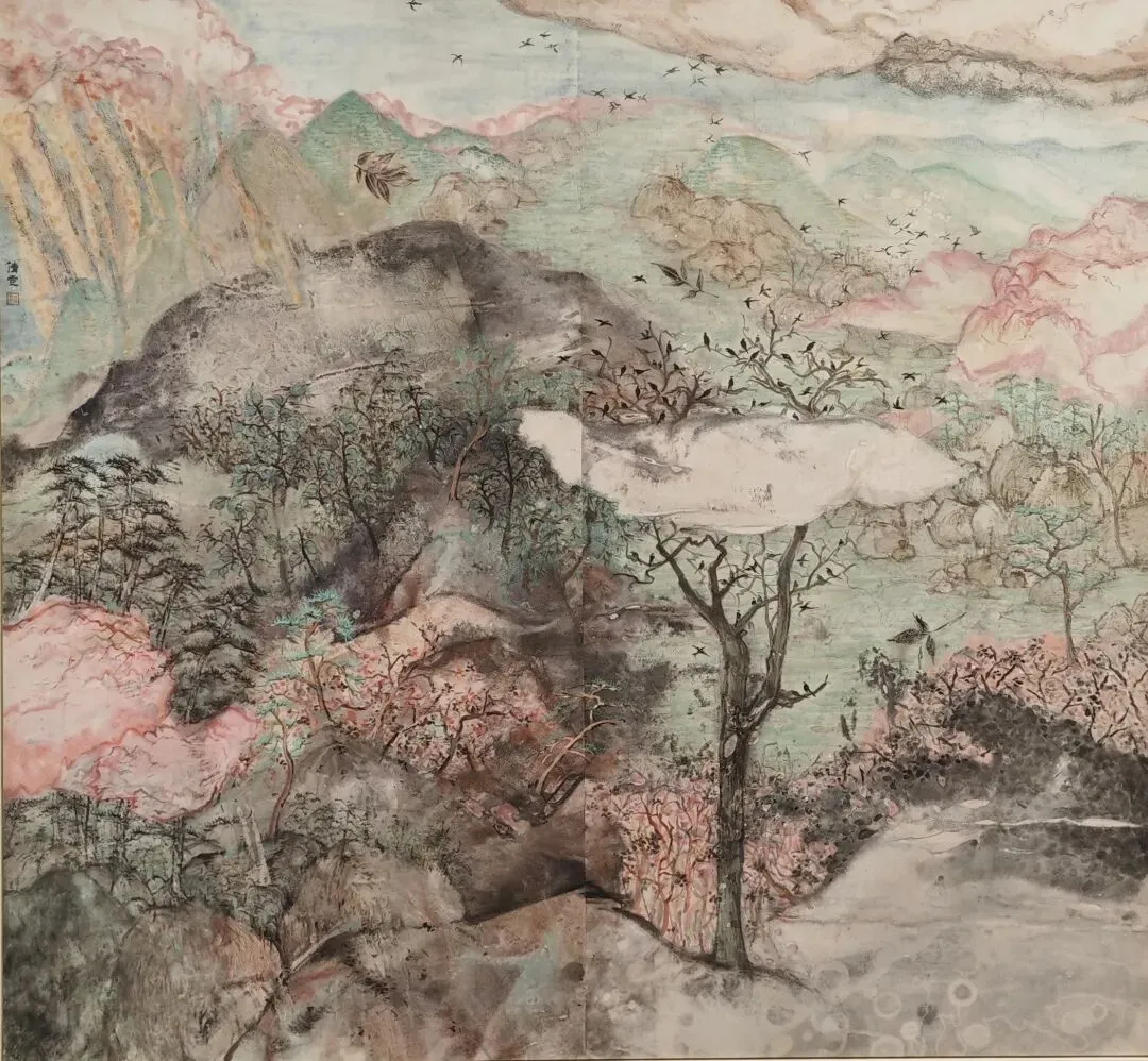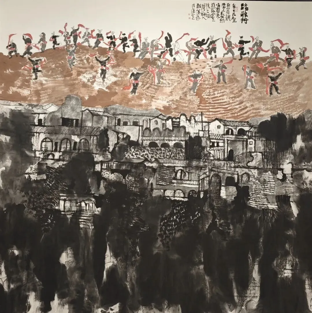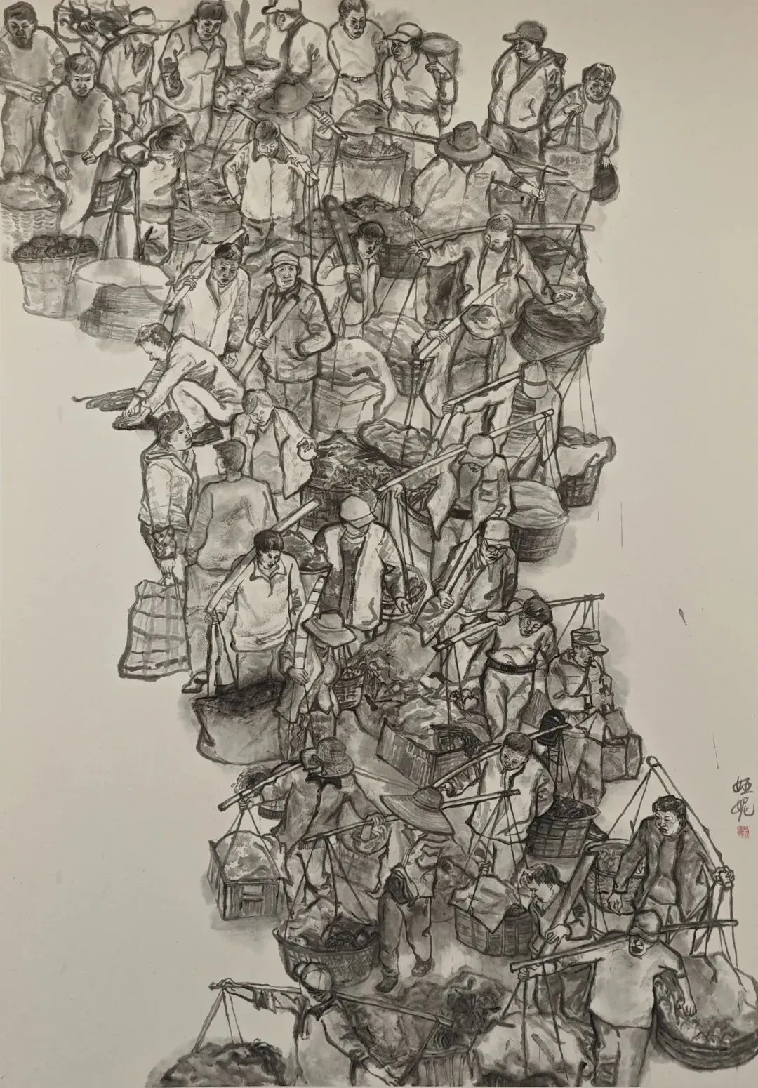 展品包罗万象,既有家国山河的壮丽画卷,也有市井烟火的温情瞬间;工笔、写意、重彩、水墨诸流派竞相绽放。作品既坚守长安画派“一手伸向传统,一手伸向生活”的治学精神,又融入AI辅助等当代科技元素,生动诠释了传统笔墨的当代表达。