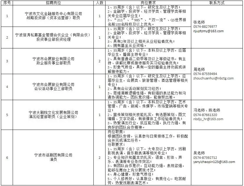 报名宁波大剧院文化发展有限公司岗位的请将个人简历及《宁波大剧院文化发展有限公司应聘登记表》(详见附件)一并打包发至指定邮箱。