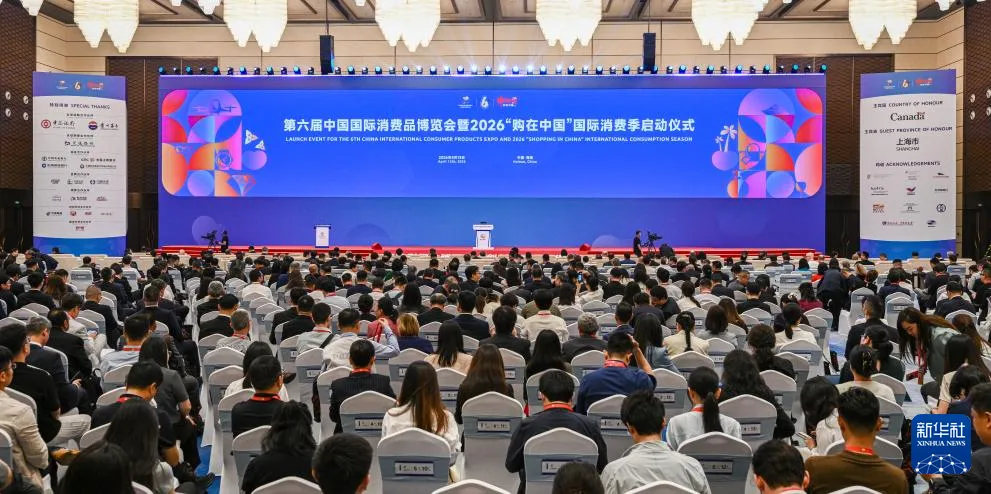这是4月13日拍摄的第六届中国国际消费品博览会暨2026“购在中国”国际消费季启动仪式现场。