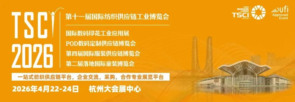 由上海纺客信息科技有限公司和绍兴羋鸿会展服务有限公司共同举办的【TSCI2026(第十一届)国际纺织供应链工业博览会】(以下简称2026 TSCI)已定档于2026年4月22-24日,在杭州大会展中心再放异彩。展会同期还将会有国际数码印花工业应用展、POD数码定制供应链博览会、国际服装供应链博览会、落地国际童装博览会等展会。
