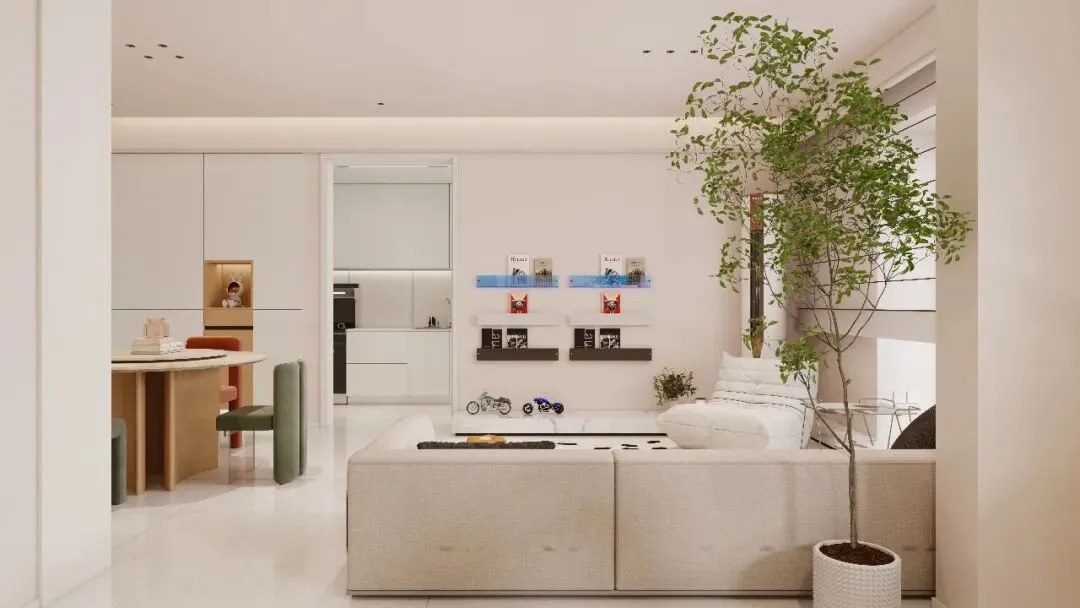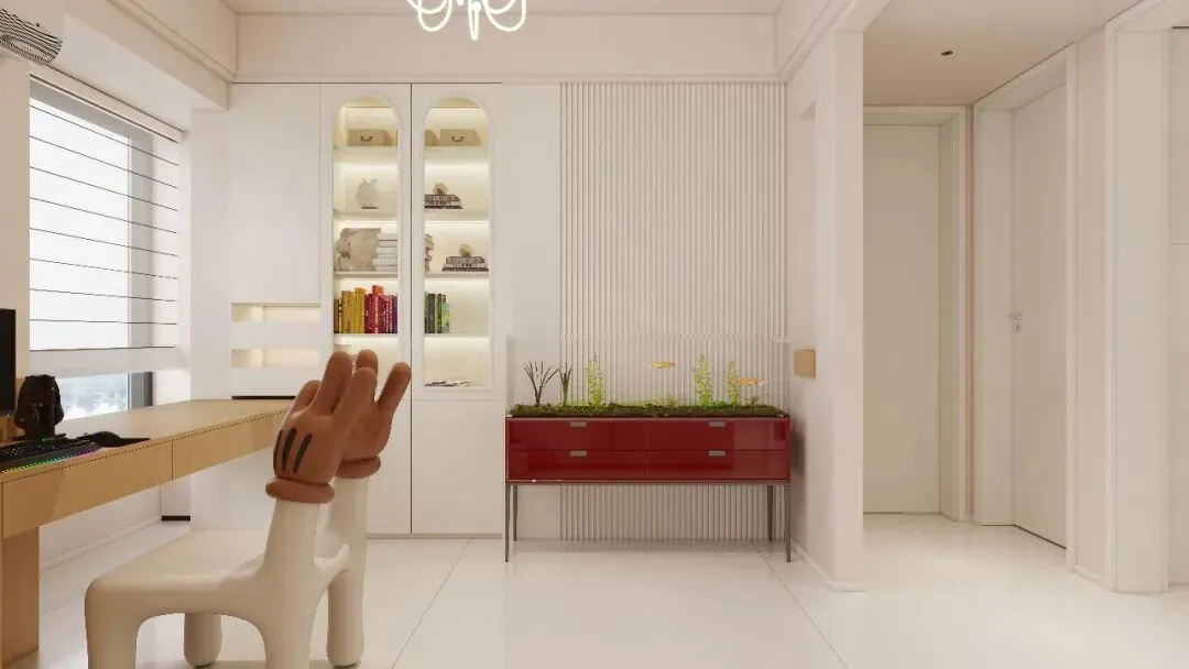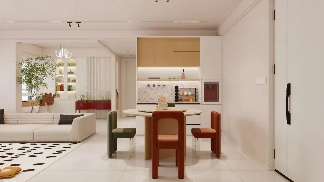 它的色彩体系犹如奶油般柔和、细腻,以浅米色、奶黄色、淡粉色等为主色调,给人一种轻柔、甜美的视觉感受。这些色彩相互融合,营造出一种温暖而宁静的空间氛围。